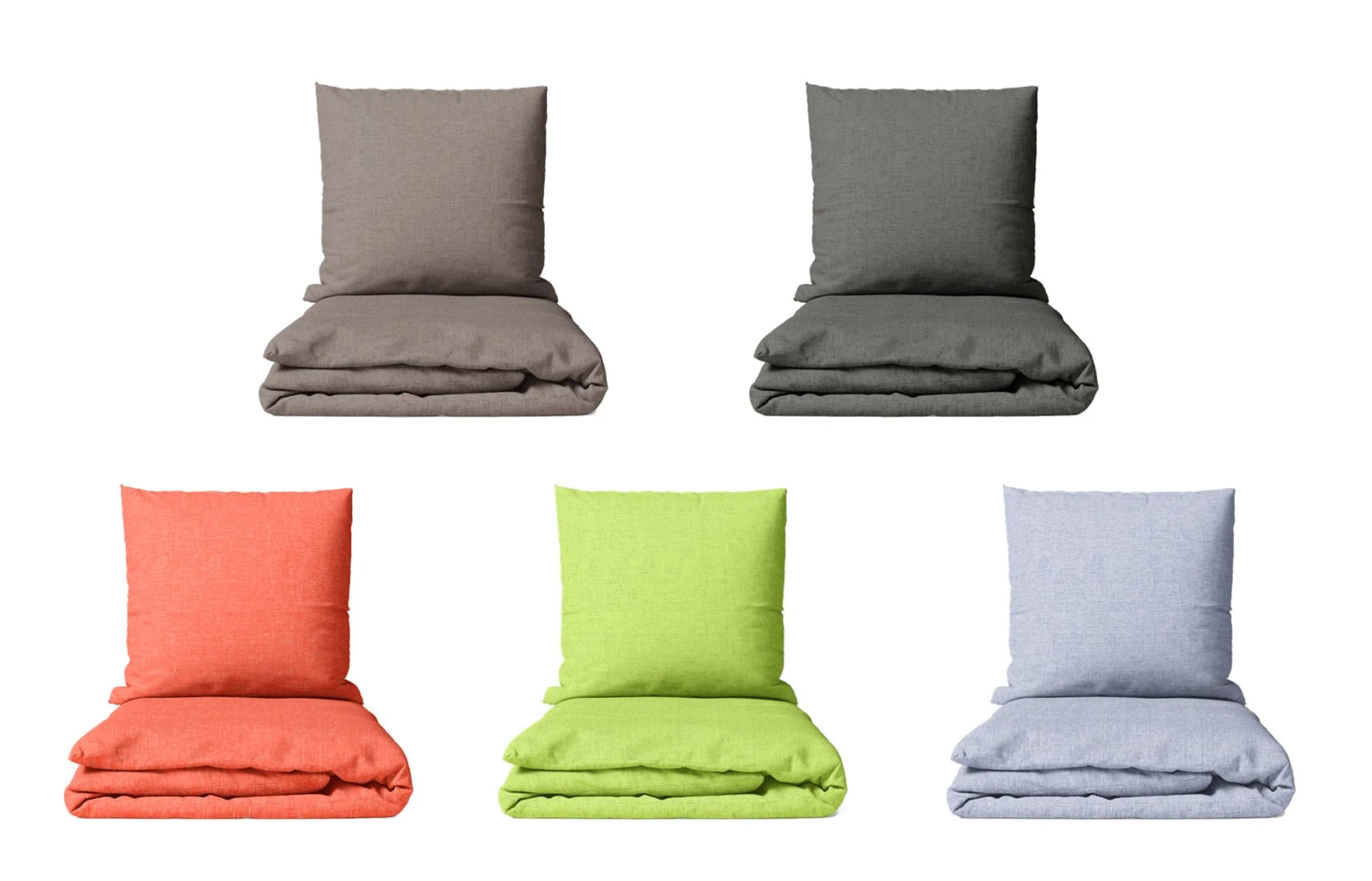 1 unifarbener Bettbezug 135 x 200 cm, 1 Kissenbezug 80 x 80 cm – 100% reine Baumwolle – feine Renforcé-Qualität – Reißverschluss – waschbar bis 60 Grad – kann gebügelt und getrocknet werden – auf Schadstofffreiheit geprüft und zertifiziert