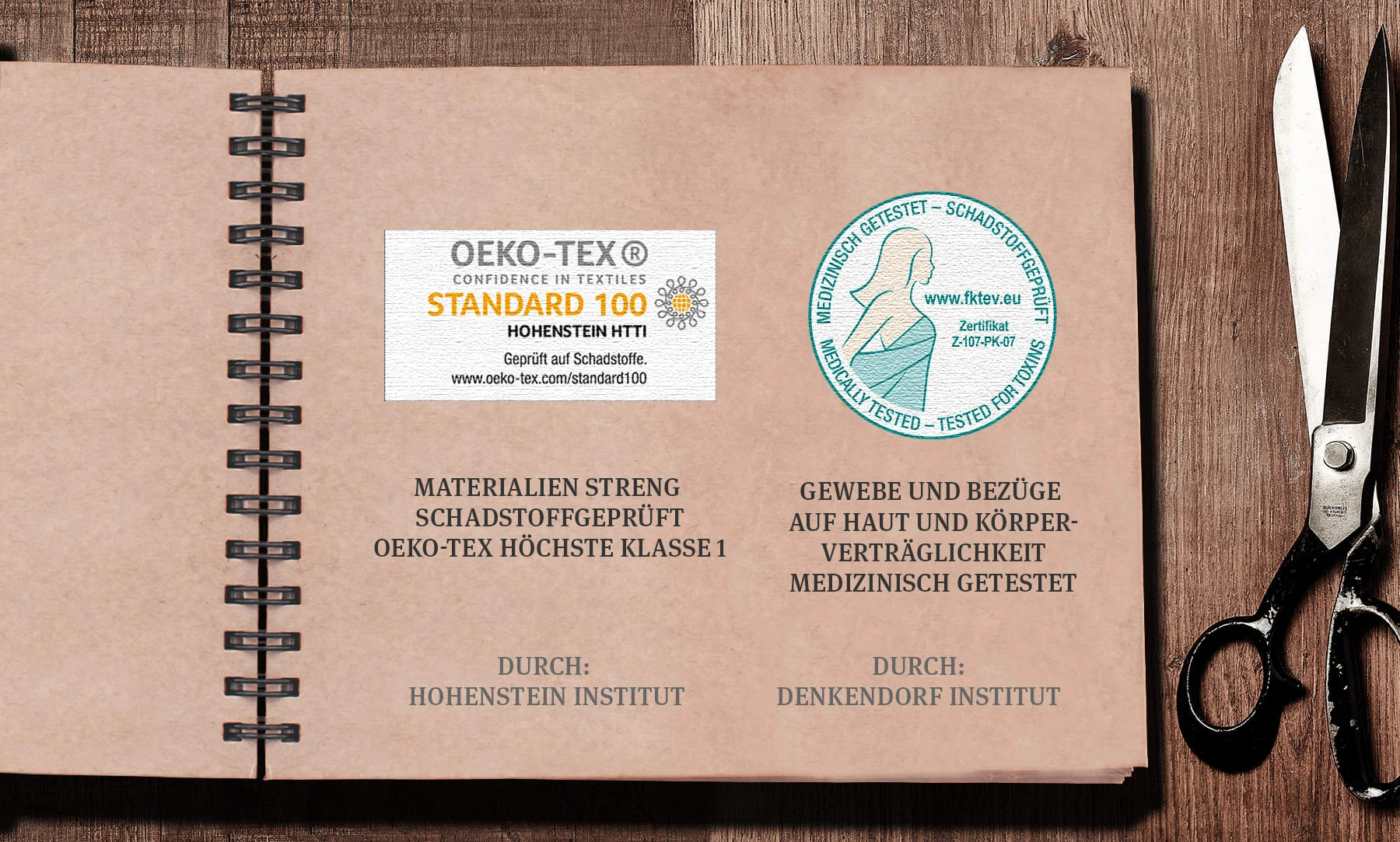 – OEKO-Tex® Standard 100, Klasse I (höchster Standard): Materialien streng schadstoff geprüft