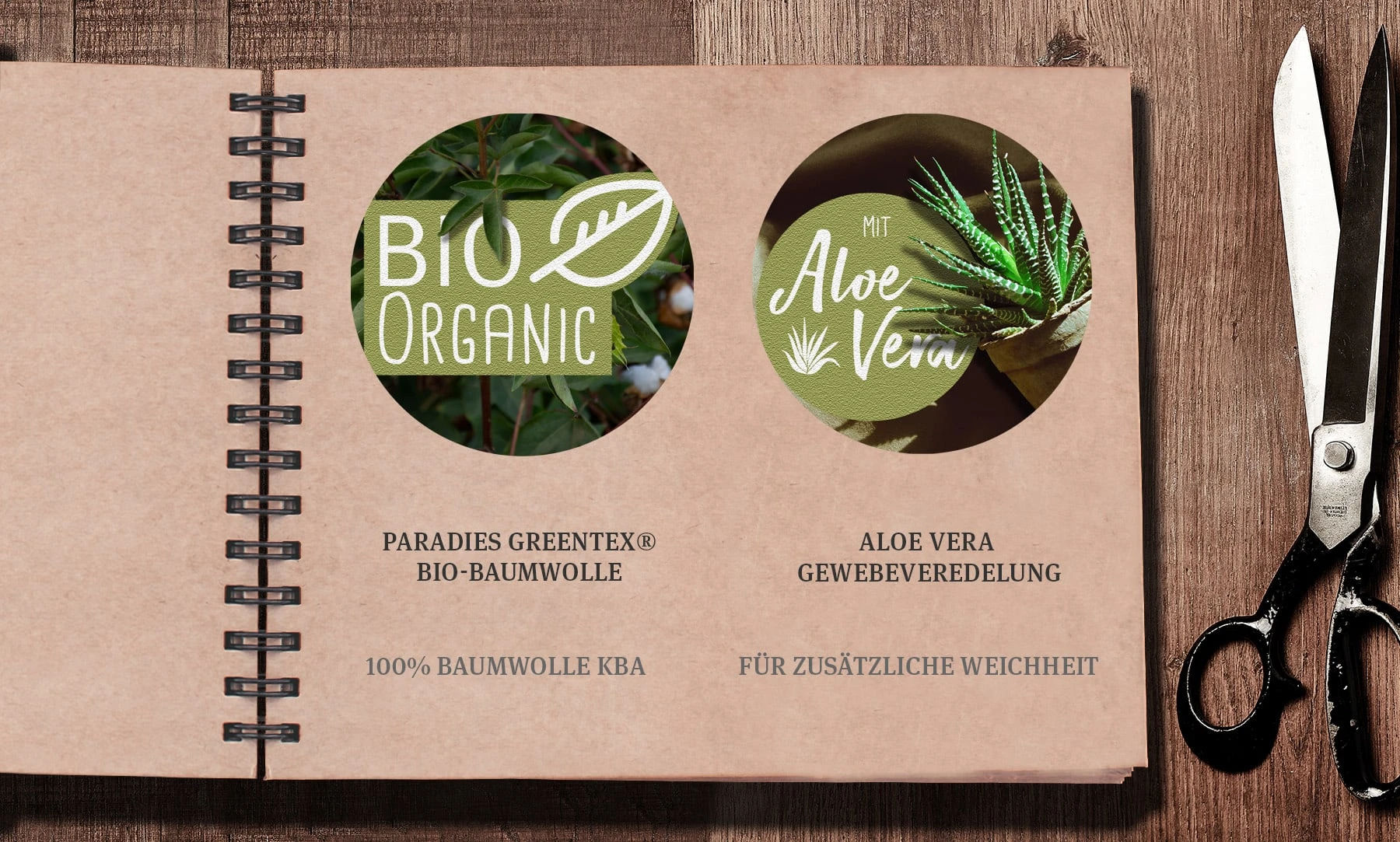 – Aloe Vera Veredelung: sorgt für Weichheit und ein sanft fließendes Gewebe, das sich an die Körperkonturen anpasst
