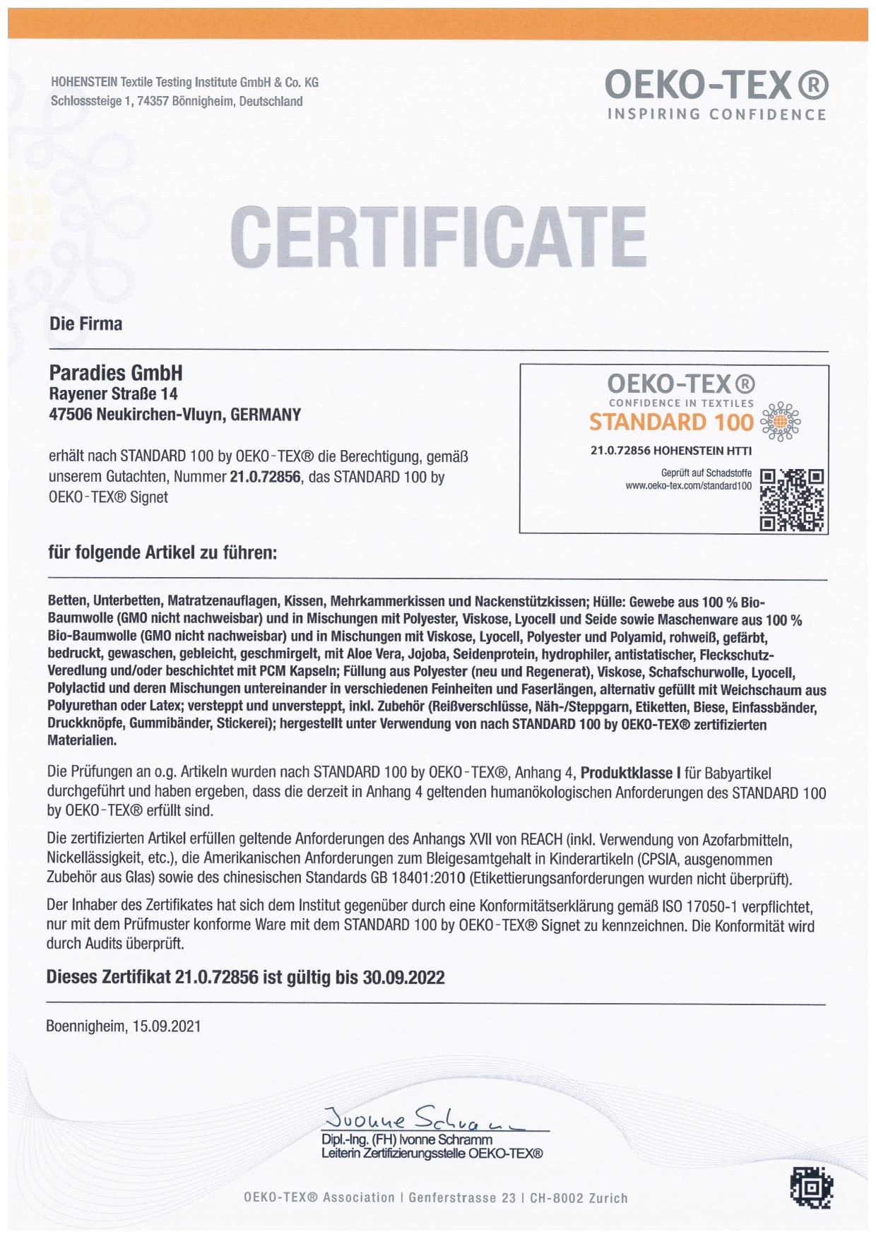 – OEKO-Tex® Standard 100, Klasse I (höchster Standard): Materialien streng schadstoff geprüft