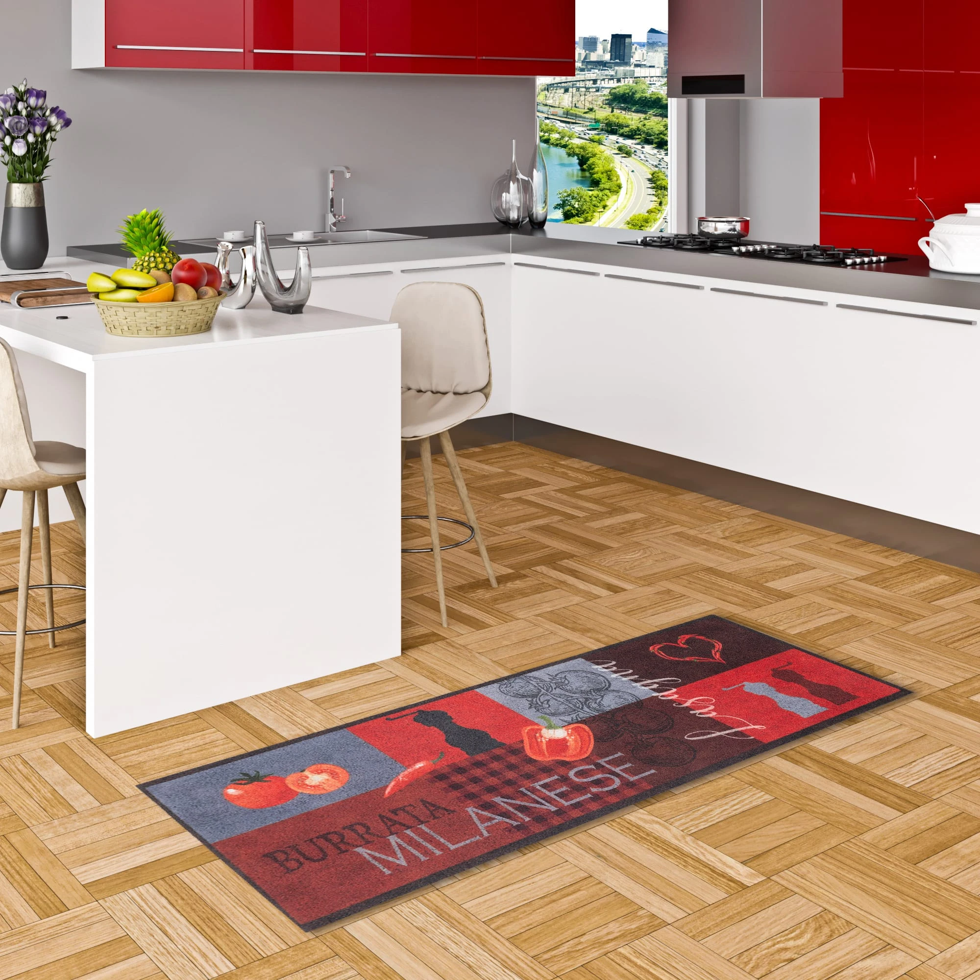 Trendy lässt Ihnen jede Freiheit zum dekorativen Einsatz. In allen Wohnbereichen, im Flur oder sogar draußen vor der Tür kann er zum Einsatz kommen, denn Schmutz darauf ist leicht zu entfernen und Ihr Zuhause bleibt sauber. Bei Bedarf kann der Küchenläufer Trendy einfach bei 30° (Handwäsche) gereinigt werden. Der Teppichläufer ist in zwei Größen verfügbar und gibt anhand der diversen Designs allen Räumen einen wohnlichen Charakter.