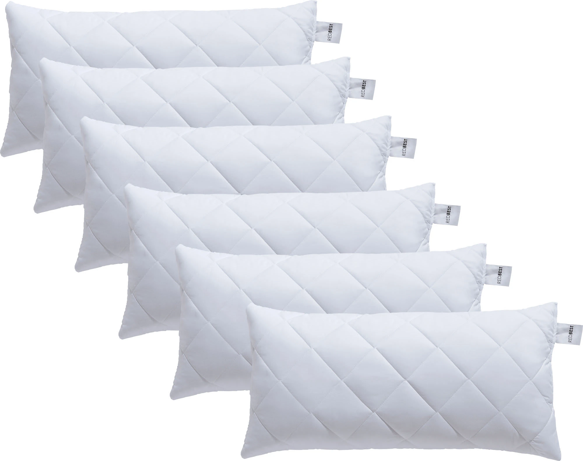 REDBEST Kissen “Atlanta” im 6er-Pack. Das Kissen bettet Sie in eine korrekte Liegeposition. Verspannungen an Schultern, Rücken und Nacken wird vorgebeugt. Es ist mit einem karoversteppten Microfaser-Bezug aus glattem, seidigem Gewebe umhüllt. Dieser geht eine perfekte Symbiose mit der weichen, anschmiegsamen Faserfüllung ein. Sie genießen einen ausgezeichneten Liegekomfort, einen optimalen Feuchtigkeitsabtransport und ein herrliches Schlafklima. Pflegeleicht, hygienisch waschbar und allergikerfreundlich.Füllung: silikonisierte Hohlraumfaser, 100% Polyester