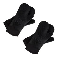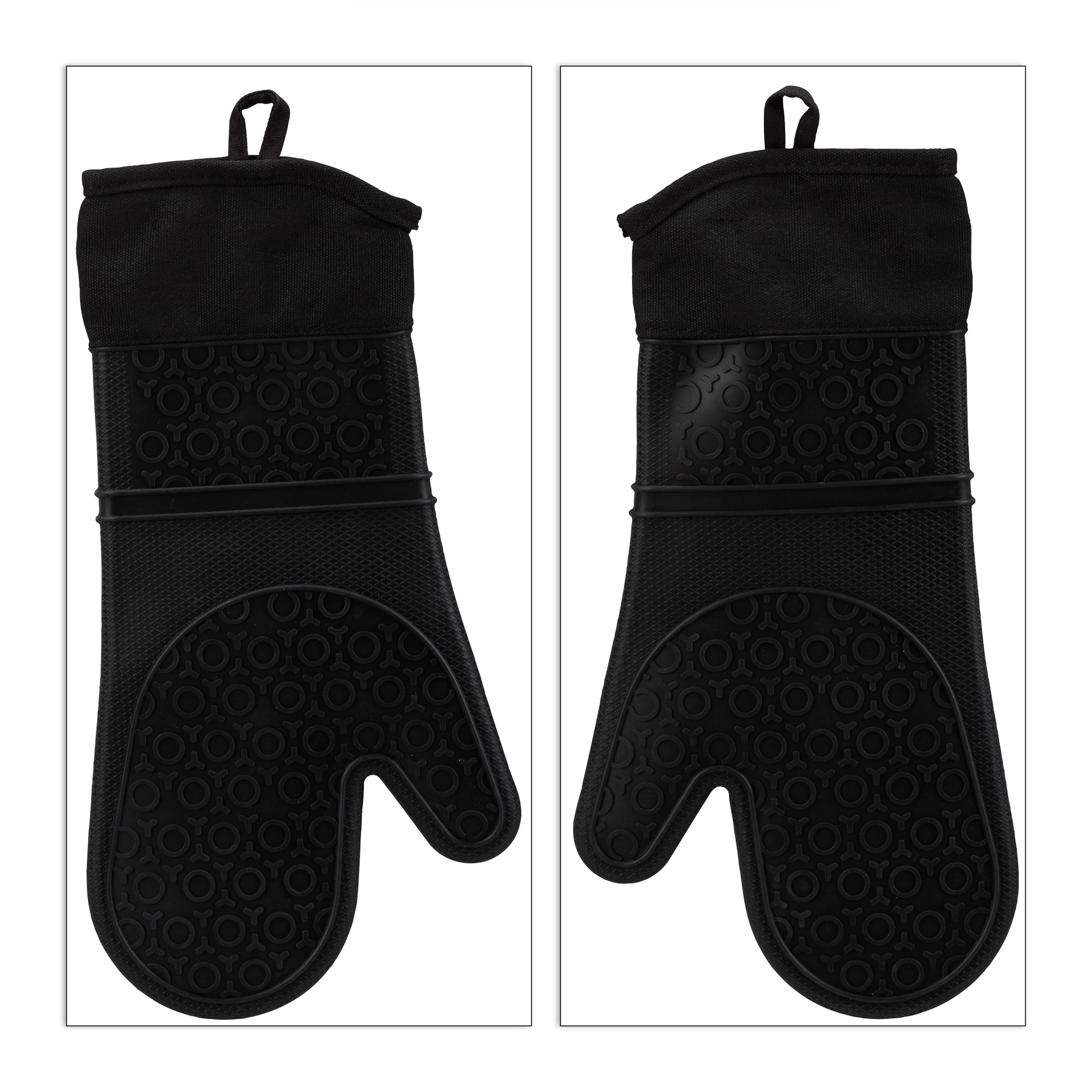 Ob Sie einen Spieß vom Grillrost nehmen, ein Blech aus dem Ofen holen oder einen heißen Topf von der Herdplatte heben möchten: Um sich die Finger zu verbrennen, reicht meist schon eine unachtsame Bewegung aus. Dank der Ofenhandschuhe aus hitzebeständigem Silikon kann Ihnen das nicht mehr passieren. Die extra langen Grillhandschuhe schützen sowohl Hände als auch Unterarme zuverlässig. Töpfe, Bleche oder Pfannen haben Sie immer fest im Griff, dafür sorgt die Anti-Rutsch Oberfläche der Handschuhe.