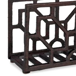 Der robuste Serviettenständer aus Gusseisen setzt Ihre Papierservietten dekorativ auf dem gedeckten Tisch oder dem Buffet in Szene. So stehen die Servietten offen in greifbarer Nähe. Der Serviettenhalter weiß mit seiner schweren Qualität zu überzeugen. Die Serviettenhalterung ist die ideale Aufbewahrung für Servietten im Standard-Format 33×33 cm. Das rustikale Design mit dem geometrischen Motiv ist zudem ein echter Blickfang bei Ihnen in der Küche oder im gastronomischen Bereich.