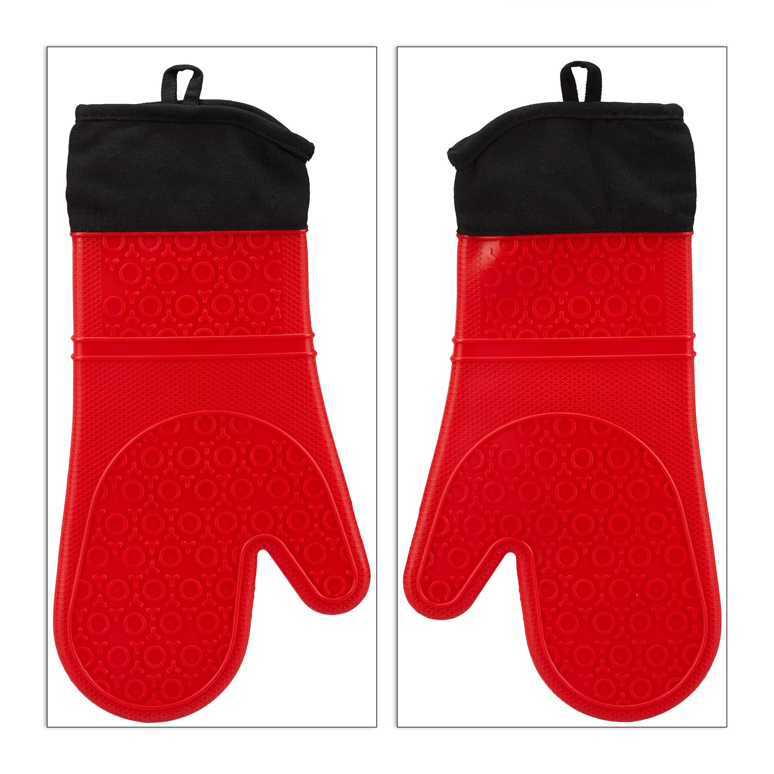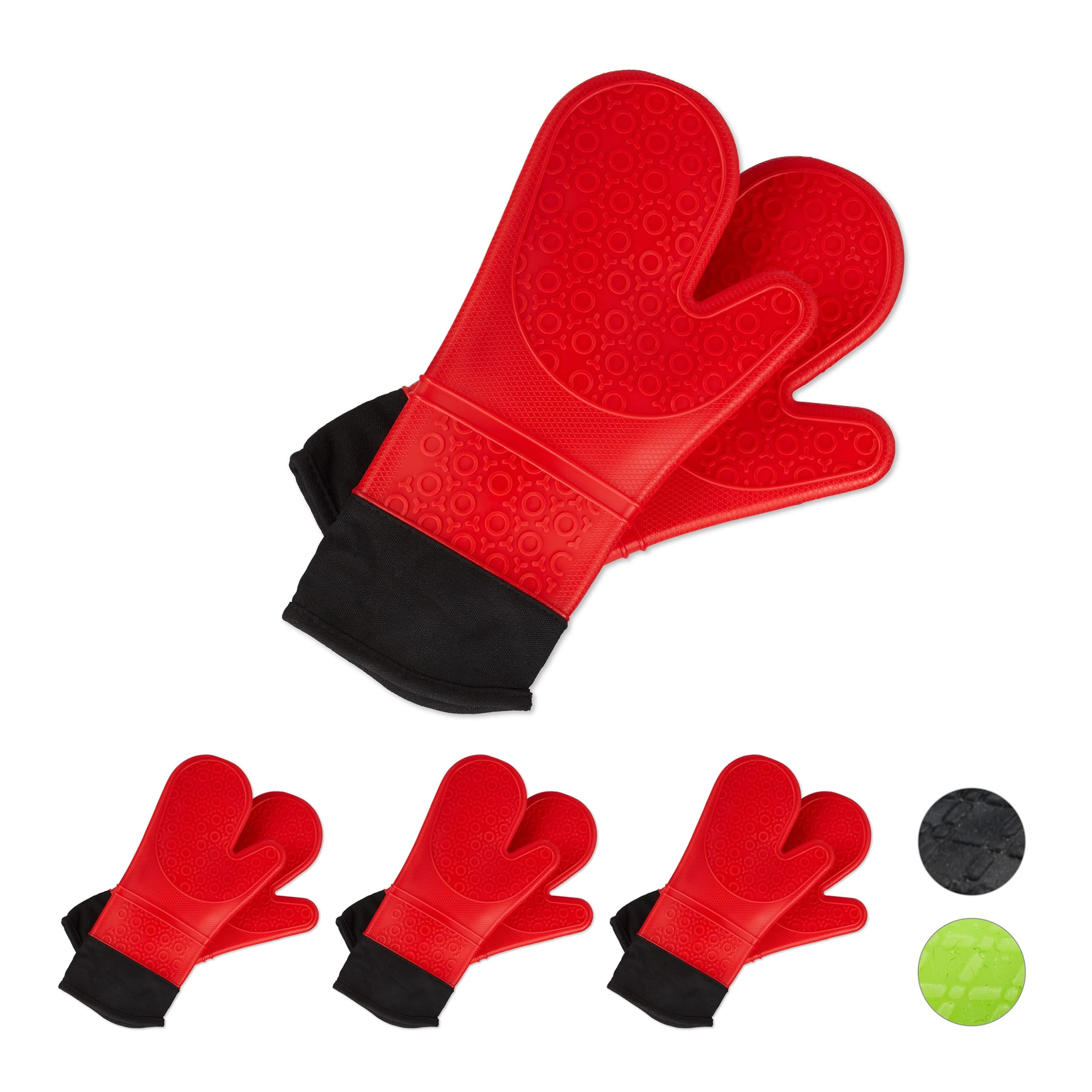 Ob Sie einen Spieß vom Grillrost nehmen, ein Blech aus dem Ofen holen oder einen heißen Topf von der Herdplatte heben möchten: Um sich die Finger zu verbrennen, reicht meist schon eine unachtsame Bewegung aus. Dank der Ofenhandschuhe aus hitzebeständigem Silikon kann Ihnen das nicht mehr passieren. Die extra langen Grillhandschuhe schützen sowohl Hände als auch Unterarme zuverlässig. Töpfe, Bleche oder Pfannen haben Sie immer fest im Griff, dafür sorgt die Anti-Rutsch Oberfläche der Handschuhe.