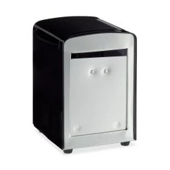 Der Serviettenhalter ist für kleine Servietten der Größe 8 x 12 cm geeignet und lässt sich bei Bedarf immer nachfüllen. Ausgestattet mit Gumminoppen an der Unterseite, hat der Serviettenständer einen sicheren Halt auf dem Tisch und rutscht nicht. Er hat eine einfarbige Oberfläche, die durch ihre Schlichtheit in jede Umgebung passt.