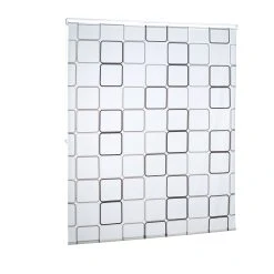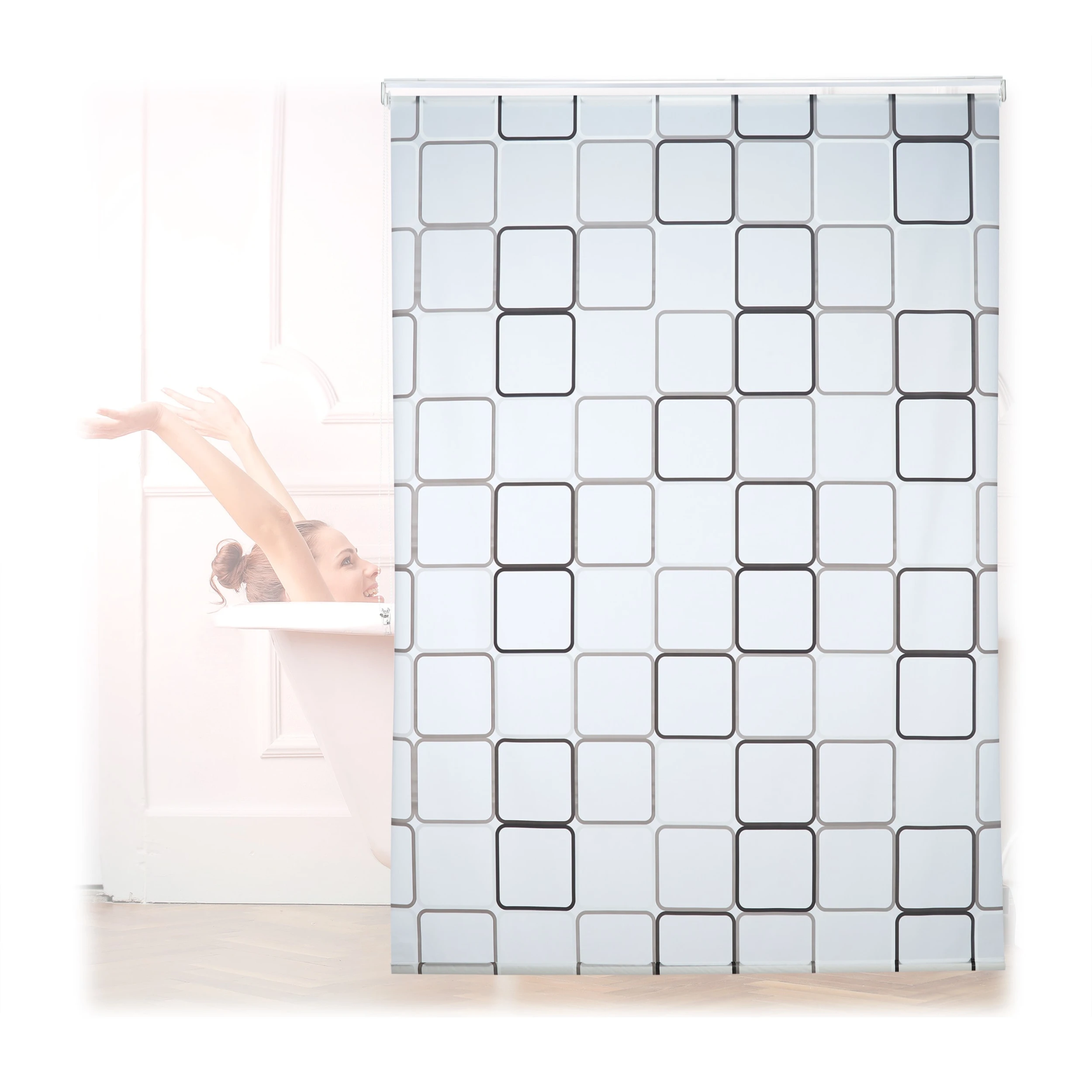 Das semitransparente Badrollo mit dezenten Retro Quadern in Weiß- und Grautönen kann leicht an der Zimmerdecke angebracht werden und ist eine moderne Alternative zum herkömmlichen Duschvorhang. Durch die Beschwerung am unteren Ende liegt das Duschrollo gerade an der Badewanne an, sodass Ihre Fliesen vor Wassertropfen geschützt werden und kein lästig herumwedelnder Vorhang Sie beim Duschen stört. Bei Nichtgebrauch ziehen Sie das trockene Rollo einfach am Seilzug nach oben, sodass es dezent zusammengerollt wird.