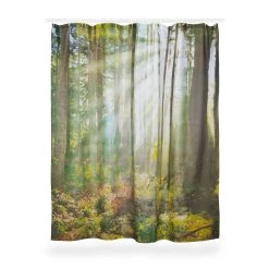 Der Duschvorhang mit atemberaubendem Wald-Motiv bringt Wärme in Ihr Badezimmer. Die Sonnenstrahlen leuchten sanft durch die einzelnen Bäume und schaffen eine tolle Atmosphäre. Der Aufdruck entführt Sie in eine dicht bewachsene, grüne Landschaft. Lassen Sie Ihre Gedanken beim Anblick des Badvorhangs schweifen. So wird das Zähneputzen zum Entspannungsmoment.