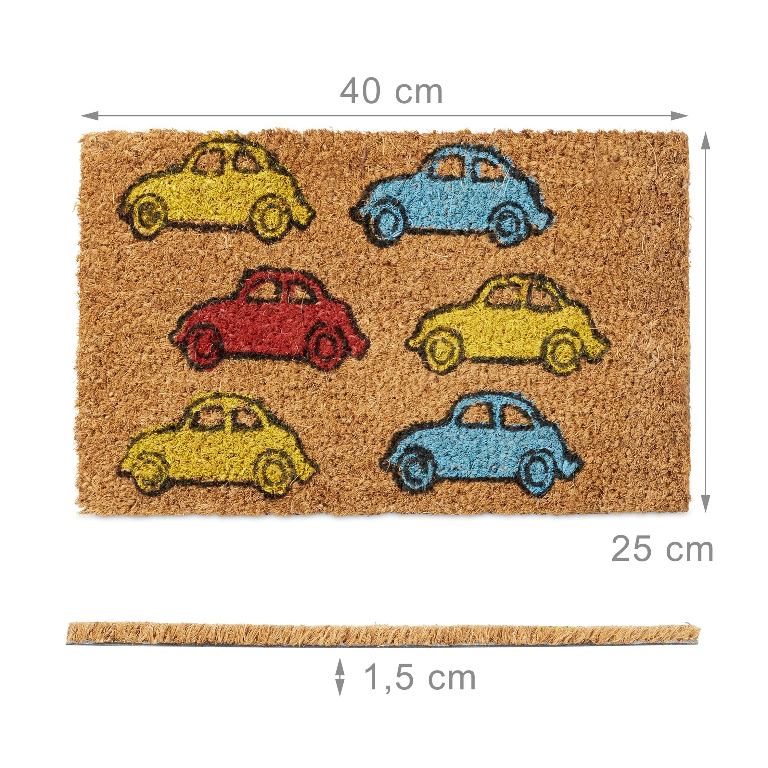 Mit dieser Fußmatte im Mini-Format lernen Kinder schon früh ein gewisses Maß an Sauberkeit. Füße abtreten ist schließlich nicht nur bei Erwachsenen eine wichtige Angelegenheit. Mit den bunten Motiven Katzen, Anker, Fußball und Co. macht den Kids das Füße abtreten sogar Spaß! Platzieren Sie die rutschfesten Schmutzfangmatten aus natürlichem Kokos vor dem Kinderzimmer, vor dem Baumhaus oder neben Ihren eigentlichen Fußabtreter.