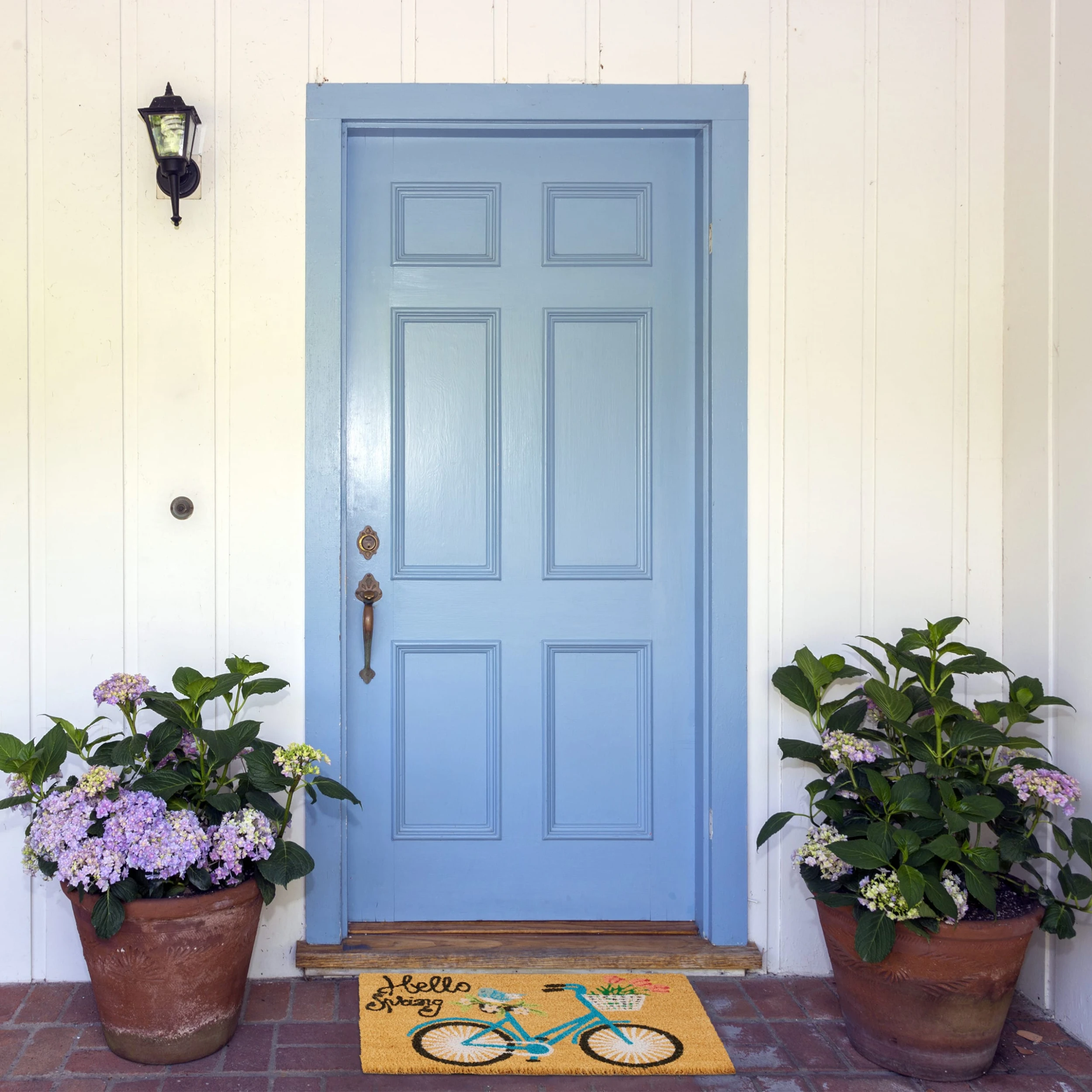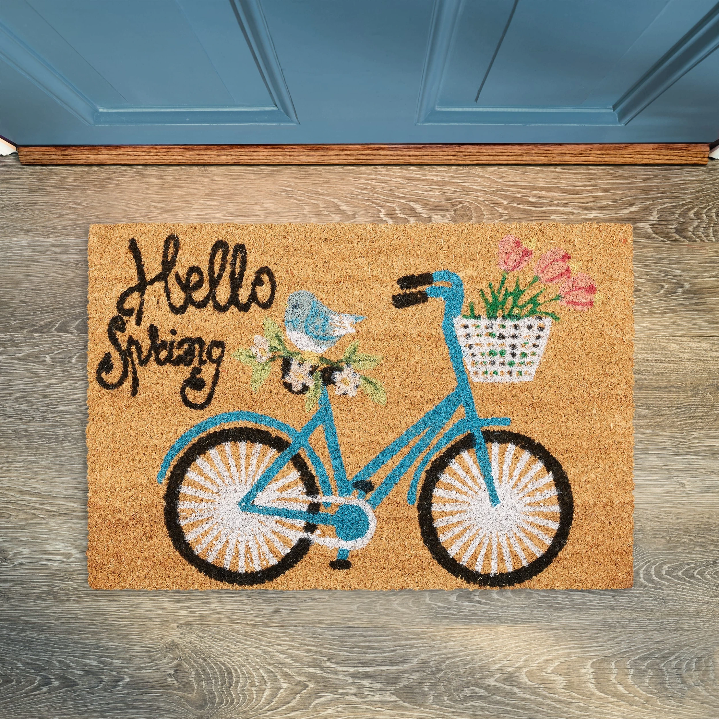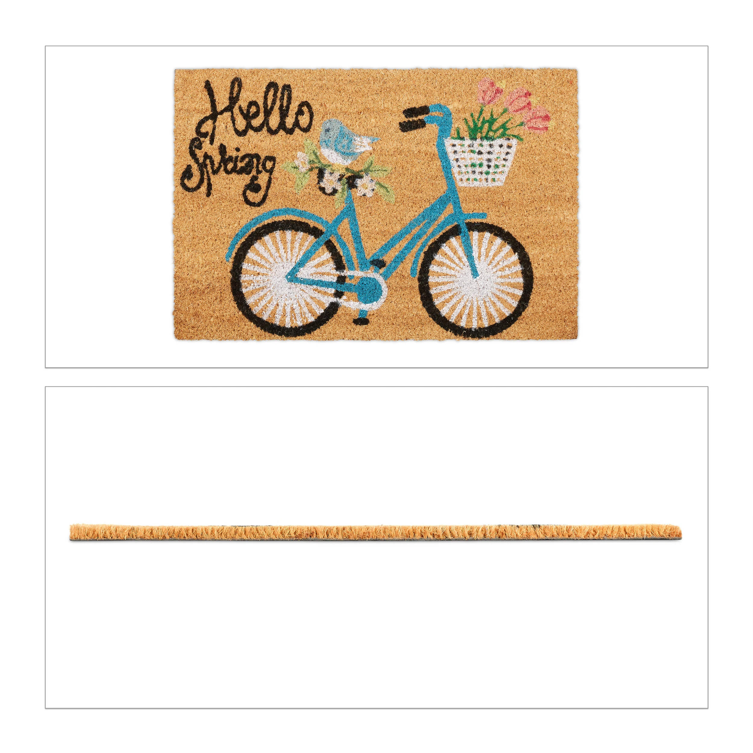 Mit dieser fröhlichen Kokosfußmatte mit Fahrrad-Motiv und Hello Spring-Schriftzug heißen Sie nicht nur den Frühling, sondern auch Ihre Gäste willkommen. Doch der Türvorleger punktet nicht nur optisch. Durch die natürlichen Kokosfasern ist die Türmatte robust und langlebig. Der umweltfreundliche Rohstoff zeichnet sich durch wetterfeste Eigenschaften aus und verleiht dem Fußabtreter einen natürlichen Look. Die Unterseite besteht aus rutschfestem PVC, welches die Schmutzmatte an ihrem Platz hält.