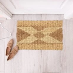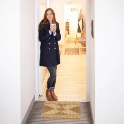 Mit der Jutematte mit dekorativem, geometrischem Muster zeigst Du Deinen Besuchern, dass sie bei Dir herzlich willkommen sind. Doch der Schuhabstreicher punktet nicht nur optisch. Durch die natürlichen Jutefasern ist die Türmatte robust und langlebig. Der umweltfreundliche Rohstoff zeichnet sich durch seine hohe Strapazierfähigkeit aus und verleiht dem Fußabstreifer einen natürlichen Look. Der Schuhabstreifer wurde in Handarbeit gefertigt und lässt sich zur Reinigung einfach absaugen.