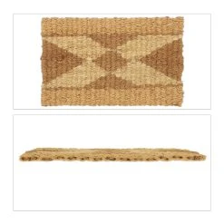 Mit der Jutematte mit dekorativem, geometrischem Muster zeigst Du Deinen Besuchern, dass sie bei Dir herzlich willkommen sind. Doch der Schuhabstreicher punktet nicht nur optisch. Durch die natürlichen Jutefasern ist die Türmatte robust und langlebig. Der umweltfreundliche Rohstoff zeichnet sich durch seine hohe Strapazierfähigkeit aus und verleiht dem Fußabstreifer einen natürlichen Look. Der Schuhabstreifer wurde in Handarbeit gefertigt und lässt sich zur Reinigung einfach absaugen.