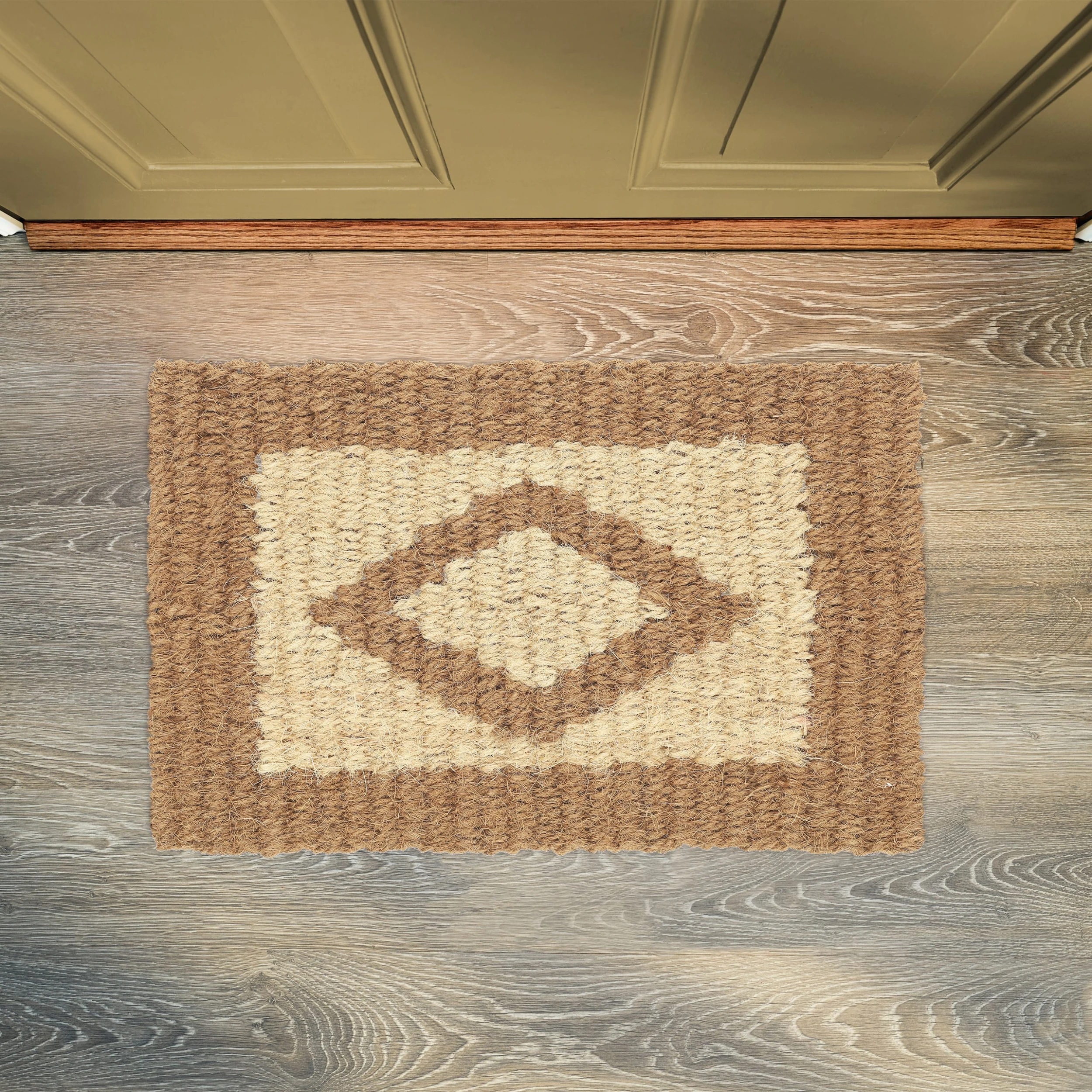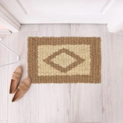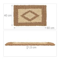 Mit der Jutematte mit dekorativem, geometrischem Muster zeigst Du Deinen Besuchern, dass sie bei Dir herzlich willkommen sind. Doch der Schuhabstreicher punktet nicht nur optisch. Durch die natürlichen Jutefasern ist die Türmatte robust und langlebig. Der umweltfreundliche Rohstoff zeichnet sich durch seine hohe Strapazierfähigkeit aus und verleiht dem Fußabstreifer einen natürlichen Look. Der Schuhabstreifer wurde in Handarbeit gefertigt und lässt sich zur Reinigung einfach absaugen.