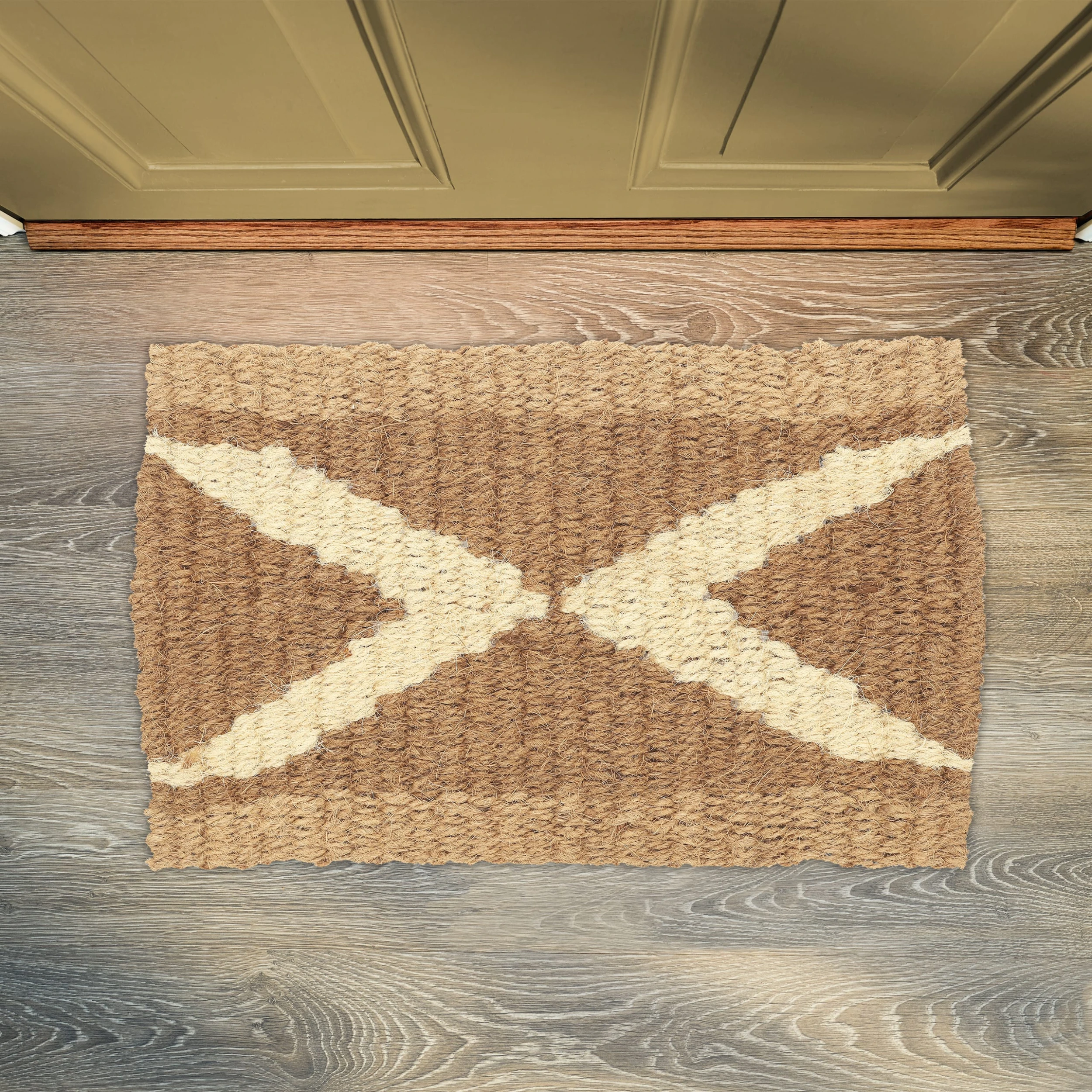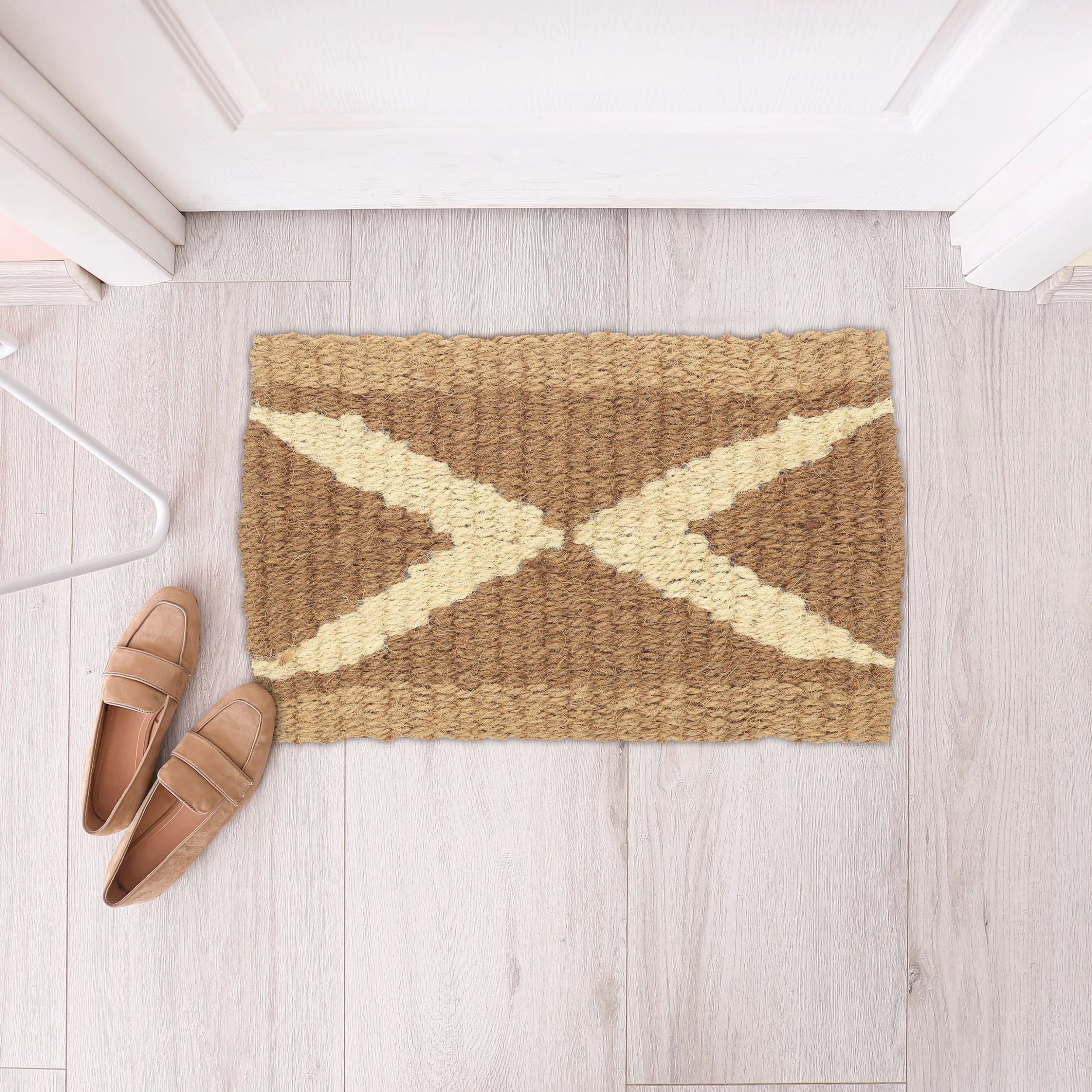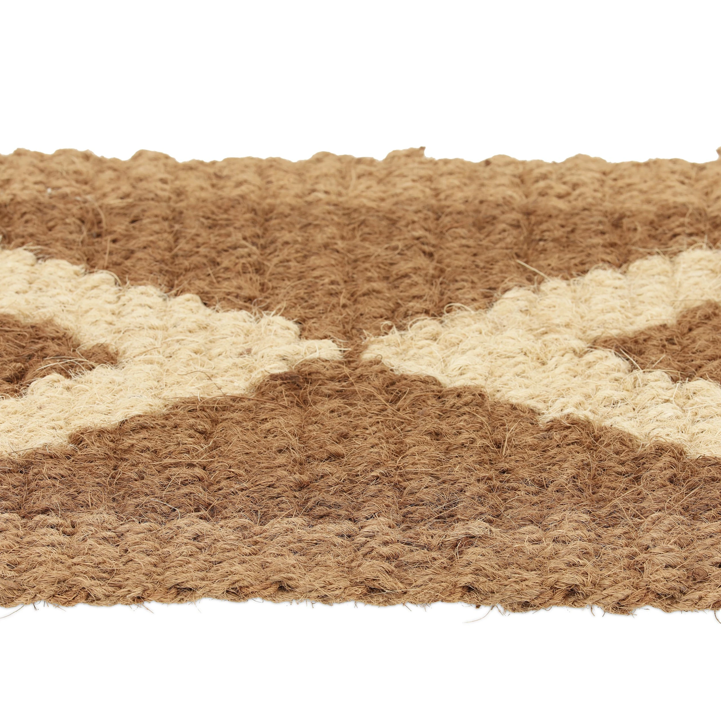 Mit der Jutematte mit dekorativem, geometrischem Muster zeigst Du Deinen Besuchern, dass sie bei Dir herzlich willkommen sind. Doch der Schuhabstreicher punktet nicht nur optisch. Durch die natürlichen Jutefasern ist die Türmatte robust und langlebig. Der umweltfreundliche Rohstoff zeichnet sich durch seine hohe Strapazierfähigkeit aus und verleiht dem Fußabstreifer einen natürlichen Look. Der Schuhabstreifer wurde in Handarbeit gefertigt und lässt sich zur Reinigung einfach absaugen.