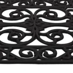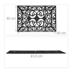 Auf dem Balkon, der Terrasse oder im Hausflur – der rutschfeste Fußabtreter aus robustem Gummi eignet sich für den Innen- und Außenbereich gleichermaßen. In klassischem Schwarz gehalten, trumpft die Haustürmatte mit einem ansprechenden, floralen Muster auf und setzt Ihren Eingangsbereich gekonnt in Szene. Schnee und Regen stellen für die witterungsbeständige Schmutzfangmatte kein Problem dar, Nässe perlt von ihr einfach ab.