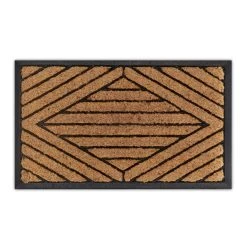 Mit dieser dekorativen Eingangsmatte vor der Haustür hältst Du Deine Innenräume zuverlässig sauber. Die wetterfeste Schuhmatte kann dazu drinnen oder draußen platziert werden. Dank der rutschfesten Unterseite hält die Schmutzmatte beim Abtreten der Schuhe fest am Boden. Über seine praktischen Eigenschaften hinaus überzeugt der Fußabtreter ebenso mit seinem ansprechenden Design. Das Streifenmuster aus schwarzem Gummi und natürlichen Kokosfasern ist ein echter Blickfang für jeden Eingangsbereich.