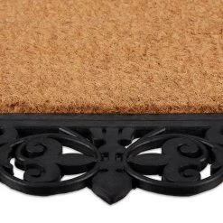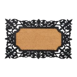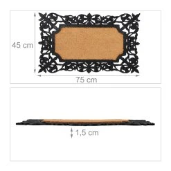 Mit dieser dekorativen Eingangsmatte vor der Haustür hältst Du Deine Innenräume zuverlässig sauber. Die wetterfeste Schuhmatte aus Gummi und Kokos kann dazu drinnen oder draußen platziert werden. Dank der rutschfesten Unterseite haftet die Schmutzmatte beim Abtreten der Schuhe fest am Boden. Über seine praktischen Eigenschaften hinaus überzeugt der Fußabtreter ebenso mit ansprechendem Design. Der Mix aus schwarzen Ornamenten und Naturfasern ist ein echter Blickfang für jeden Eingangsbereich.