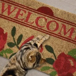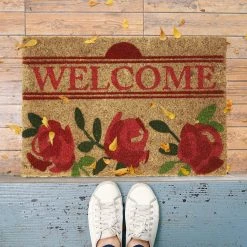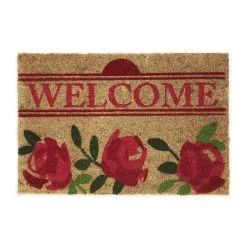 Mit dieser schicken Fußmatte mit Rosenmotiv und Spruch zauberst Du Deinen Gästen noch vor dem Türöffnen ein Lächeln ins Gesicht. Doch der Türvorleger punktet nicht nur optisch. Durch die natürlichen Kokosfasern ist die Türmatte robust und langlebig. Der umweltfreundliche Rohstoff zeichnet sich durch wetterfeste Eigenschaften aus und verleiht dem Fußabstreifer einen natürlichen Look. Die Unterseite besteht aus rutschfestem PVC, sodass der Schuhabtreter an seinem angestammten Platz bleibt.