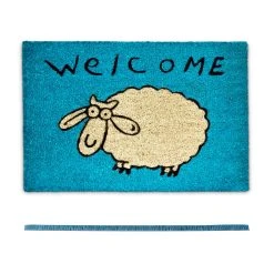 Sie suchen noch nach einer niedlichen Fußmatte für Ihre Wohnungstür? Dann ist dieser Fußabtreter genau das Richtige. Auf der hübschen, blauen Fußmatte ist ein kleines Schäfchen, welches Sie und Ihre Gäste willkommen heißt