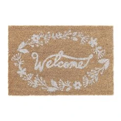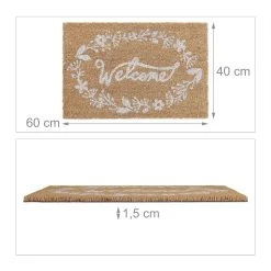 Diese dekorative Kokosfußmatte mit weißem Welcome-Schriftzug und Blumenkranz bereitet Deinen Gästen einen netten Empfang. Doch der Türvorleger punktet nicht nur optisch. Durch die natürlichen Kokosfasern ist die Türmatte robust und langlebig. Der umweltfreundliche Rohstoff zeichnet sich durch wetterfeste Eigenschaften aus und verleiht dem Fußabtreter einen natürlichen Look. Die Unterseite besteht aus rutschfestem PVC, sodass die Schmutzmatte an ihrem Platz bleibt.