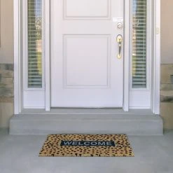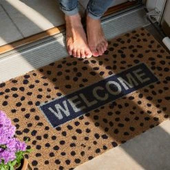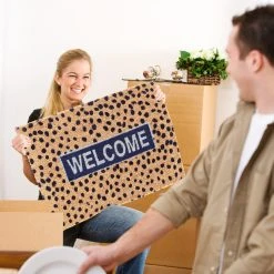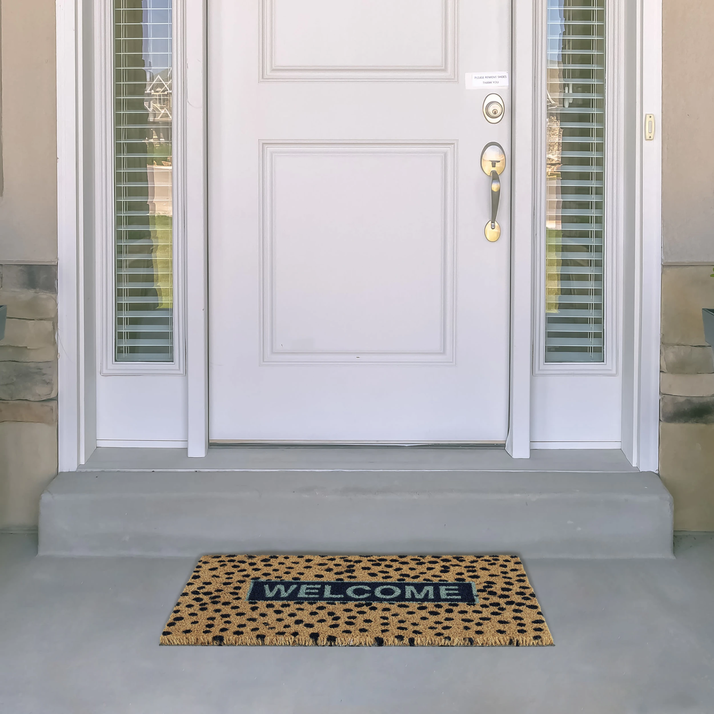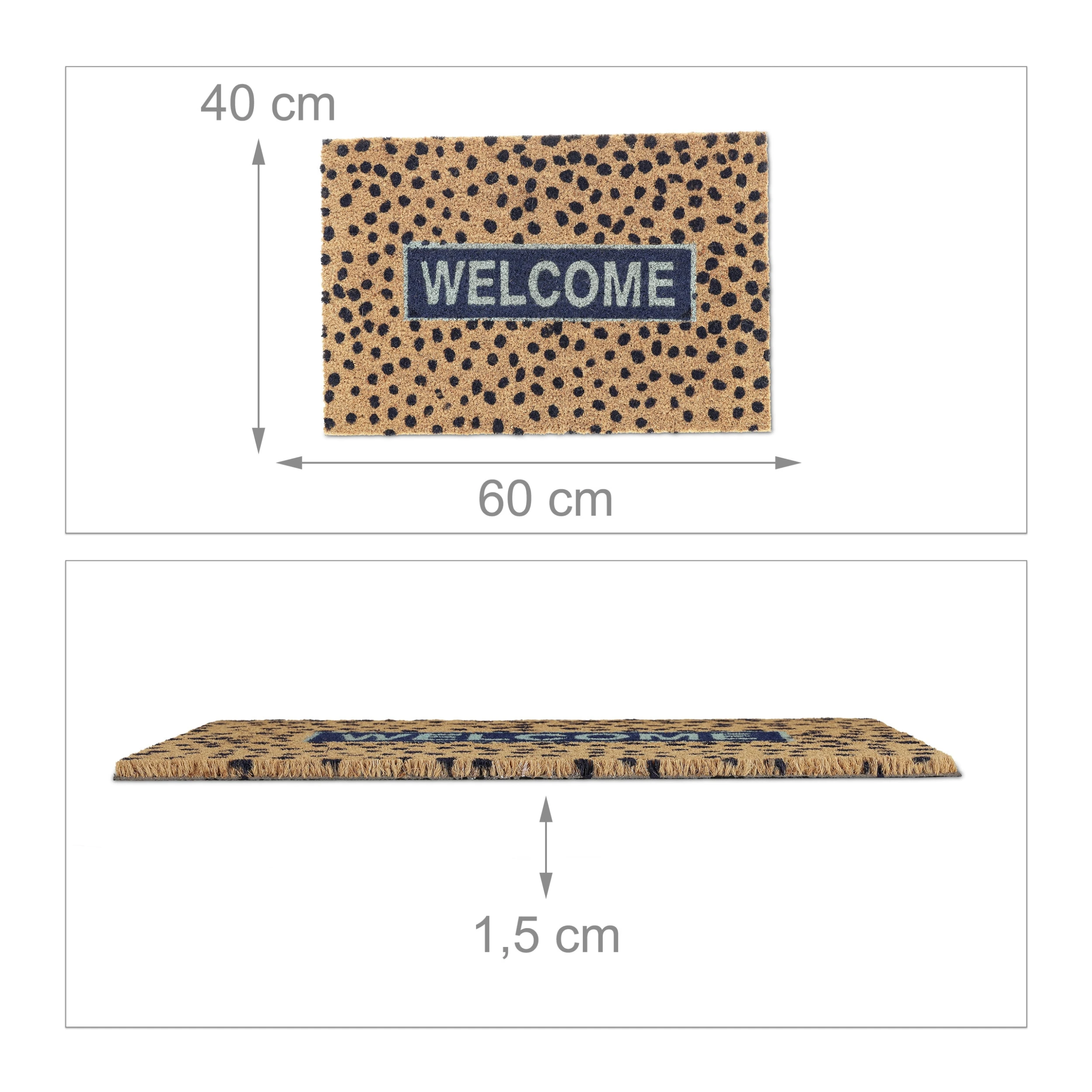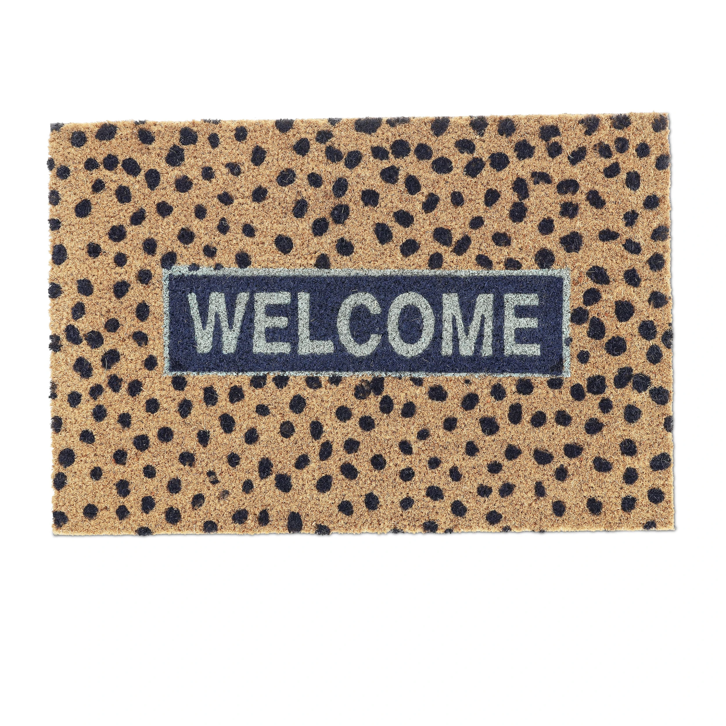 Mit dieser dekorativen Haustürmatte verleihst Du Deinem Eingangsbereich einen einladenden Look und sorgst für saubere Innenräume. Doch der bunte Schmutzabtreter punktet nicht nur mit seinem Design und dem peppigen Welcome-Schriftzug. Durch die natürlichen Kokosfasern ist die Türmatte robust und wetterfest und kann sowohl drinnen als auch draußen genutzt werden. Die Unterseite des Fußabstreifers besteht aus rutschfestem PVC, sodass der Schuhabtreter an seinem angestammten Platz bleibt.