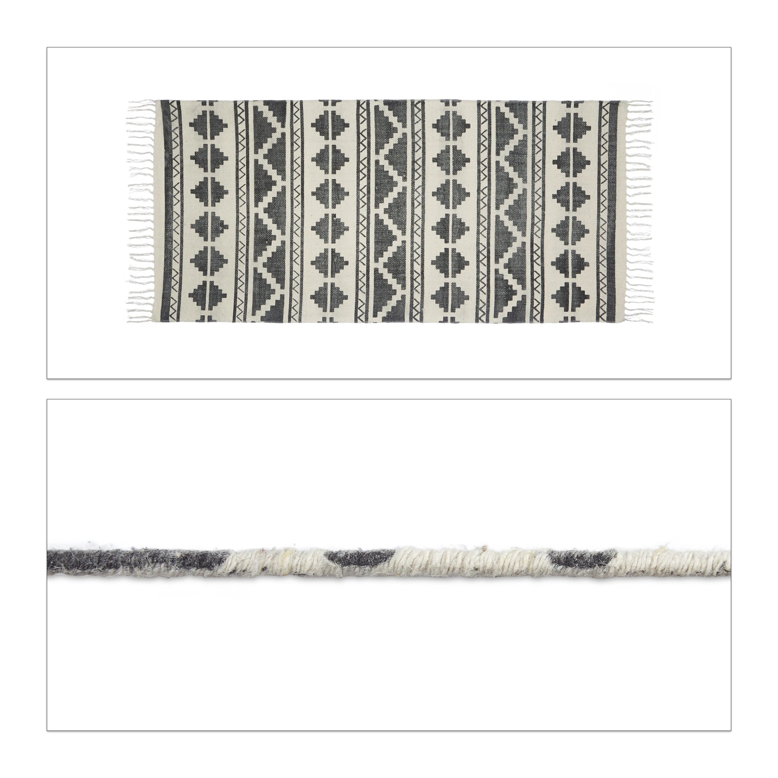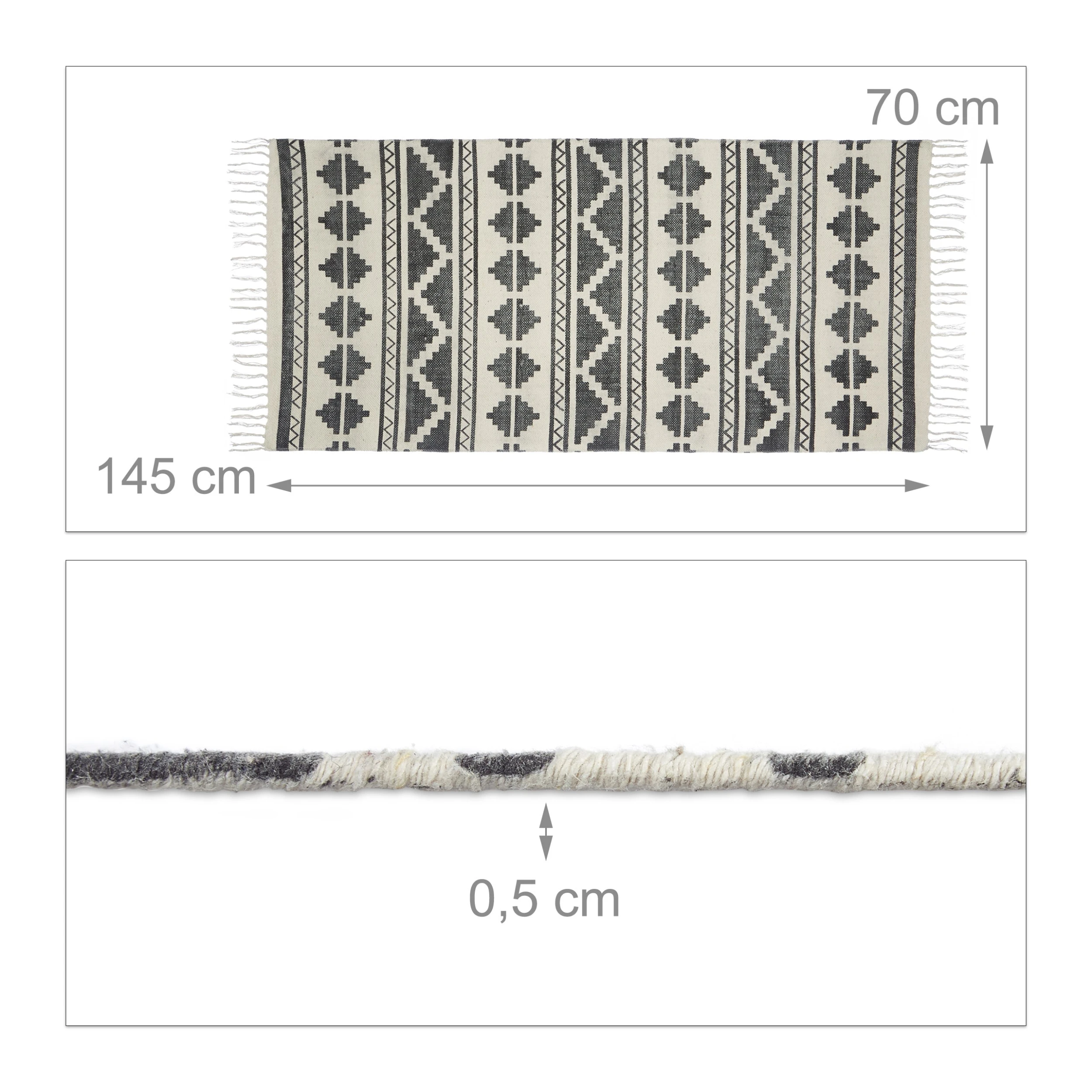 Ein heimeliges Gefühl vom ersten Moment, in dem man die Wohnung betritt. So etwas versprüht nur ein Teppichläufer für den Flur. Schmücken Sie Ihren Eingangsbereich mit den trendigen Dielenläufern mit Muster. Der Läufer ist in 2 Größen erhältlich. Der handgemachte Vorleger ist ein strapazierfähiges Flachgewebe aus Baumwolle. Eine feine Beschichtung an der Unterseite des Läufers vermindert die Rutschgefahr. Daher kann der Flurläufer auf jedem Boden genutzt werden.