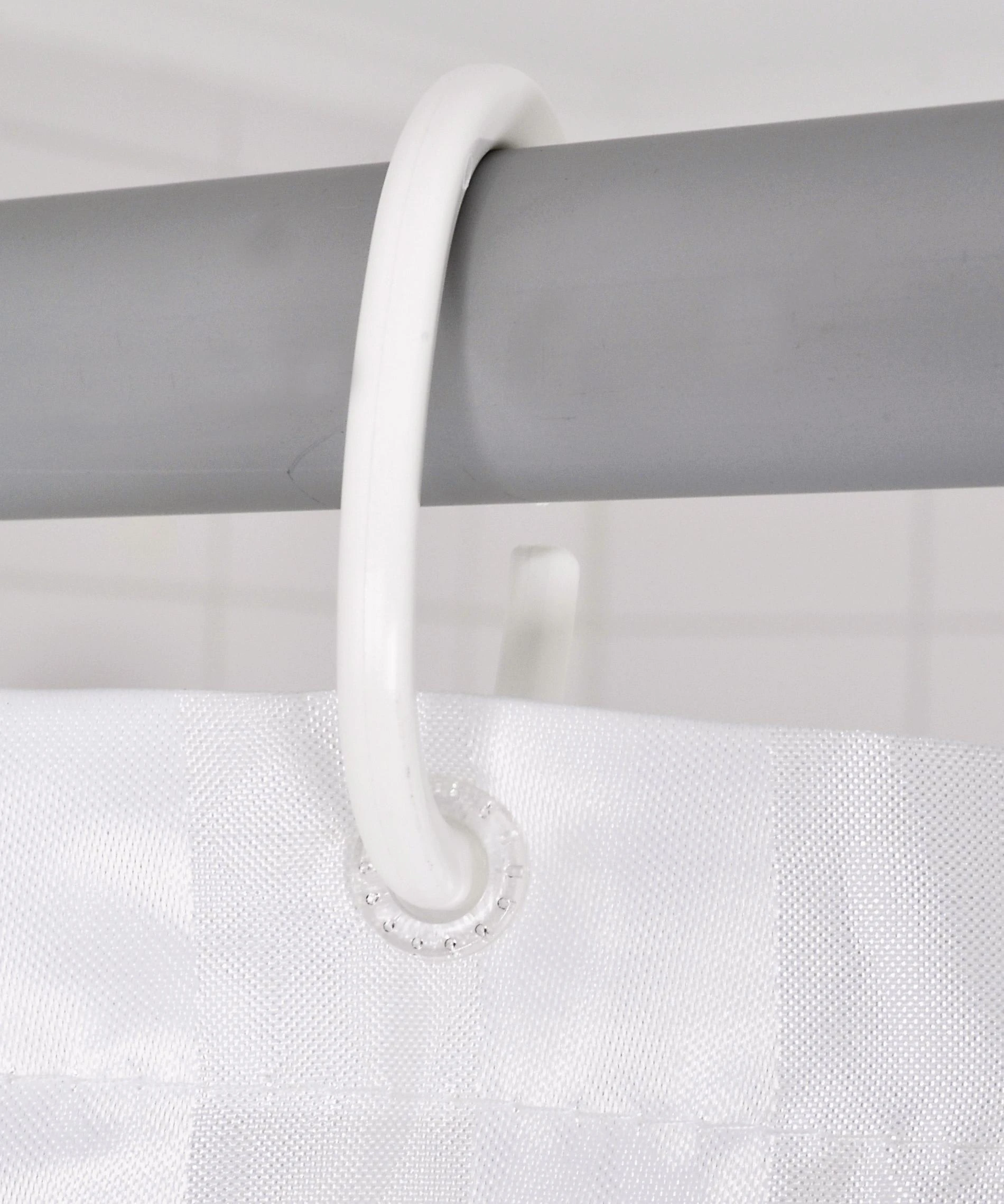 RIDDER Textil-Duschvorhänge bestehen zu 100% aus Polyester und sind wasserabweisend imprägniert. Ein gutes Material und die Verarbeitung sind die Basis eines langlebigen Produktes. Deshalb sind unsere Textil-Duschvorhänge rundum gesäumt und mit Kunststoff verstärkten Ösen zur Befestigung der Duschvorhangringe, sowie einem eingenähten, bleifreien Beschwerungsband aus umweltneutralem Kautschuk ausgestattet.
