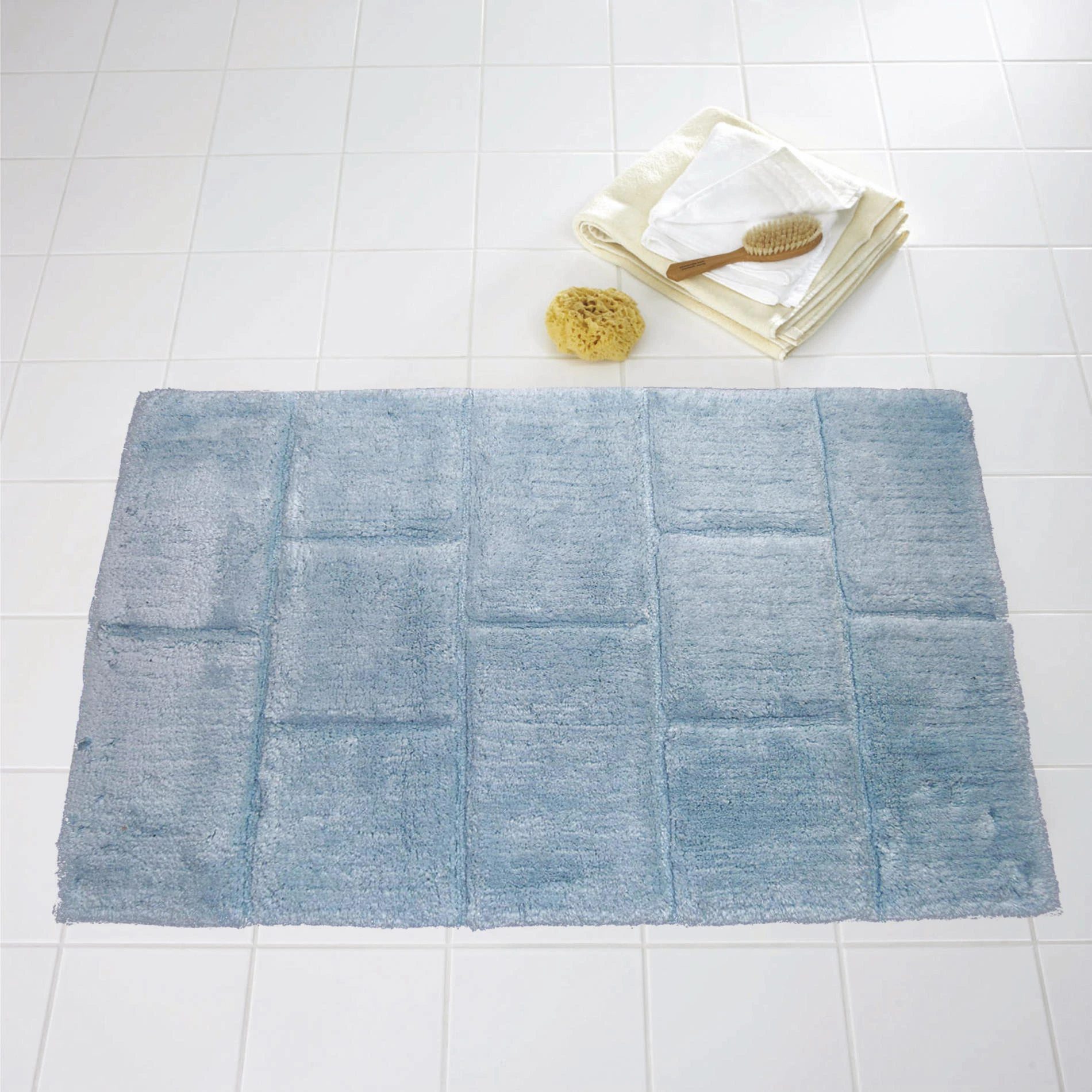 Der Bad-Teppich besteht aus 100% Baumwolle, fühlt sich angenehm auf der Haut an und sorgt für Behaglichkeit in Ihrem Bad.