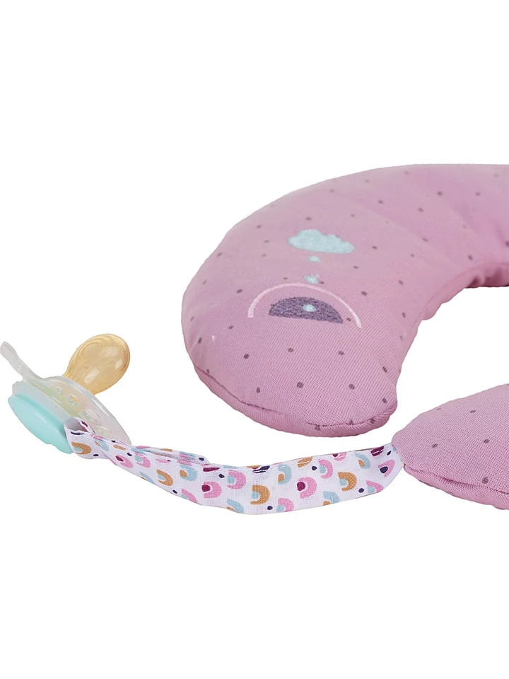 Achtung! Kontrolliert den Schnullerhalter vor jedem Gebrauch. Werft ihn beim ersten Anzeichen von Beschädigungen oder Mängeln sofort weg! Verlängert niemals den Schnullerhalter! Befestigt den Schnullerhalter niemals an Schnüren, Bändern, Trägern oder losen Teilen der Kleidung. Euer Kind kann sich damit erdrosseln.