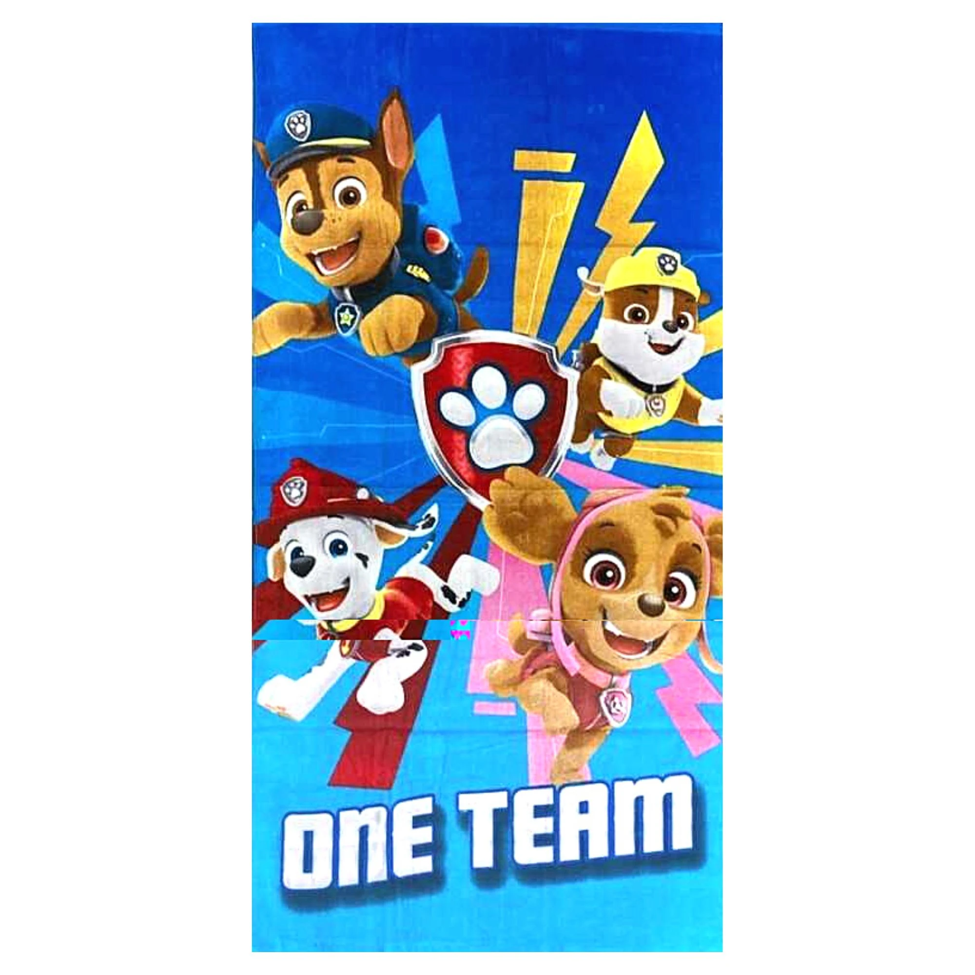 Super-niedliches Strand -und Badetuch mit dem Design von dem unschlagbarem Paw Patrol Team, das immer bereit für neue Missionen ist und Ihre Kleinen mitnimmt.