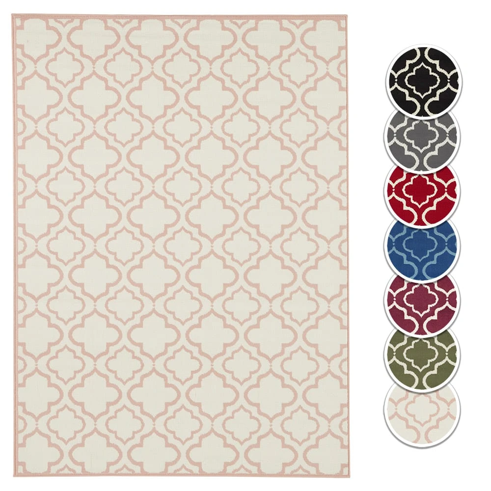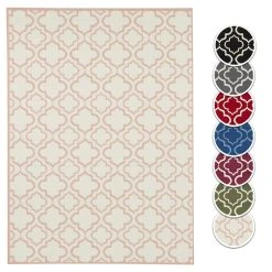 Dieser orientalische Design Teppich wird Ihrem Wohnbereich eine Atmosphäre aus 1001 Nacht verleihen. Die charakteristischen Ornamente machen diesen Wohnraumteppich zu einem echten Hingucker in Ihren Räumlichkeiten. Kontrastreich aufeinander abgestimmte Farbvariationen runden die elegante Erscheinung ab. Die Kunstfaser Polypropylen sorgt für eine lange Lebensdauer und gute Wärmedurchlässigkeit im Einsatz mit Fußbodenheizungen. Wir empfehlen eine Anti-Rutsch-Unterlage, um auf glatten Böden ein mögliches Verrutschen zu vermeiden.