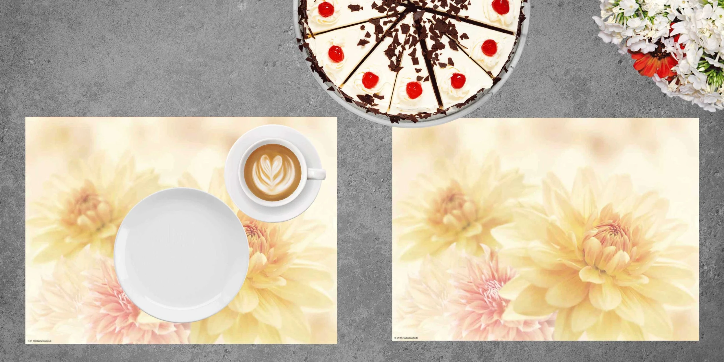 Tolle Tischsets mit gelben Dahlien. Macht Lust auf die schönste Zeit des Jahres, verwandelt Ihren Tisch in einen echten Hingucker und gibt ihm eine individuelle Note! Die Platzsets der Tischsetmacher sind die ideale Kombination aus Schutz vor Flecken und einzigartiger Tischdekoration mit Stil! Umweltfreundlich, recyclingfähig und mehrfach verwendbar. Verpackungseinheit 12 Stück (Größere Auflagen auf Anfrage).