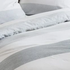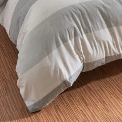 Diese Winterbettwäsche überzeugt mit einem Blockstreifenmuster in den Farben Weiss, Wollweiss, Grau.