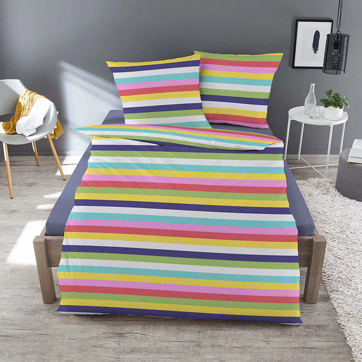 Diese Winterbettwäsche überzeugt mit einem regenbogenartigen Design.