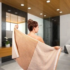 Die Sortimente umfassen Waschhandschuhe, Gästetücher, Handtücher, Duschtücher, Badetücher und natürlich auch das extragroße Saunatuch.