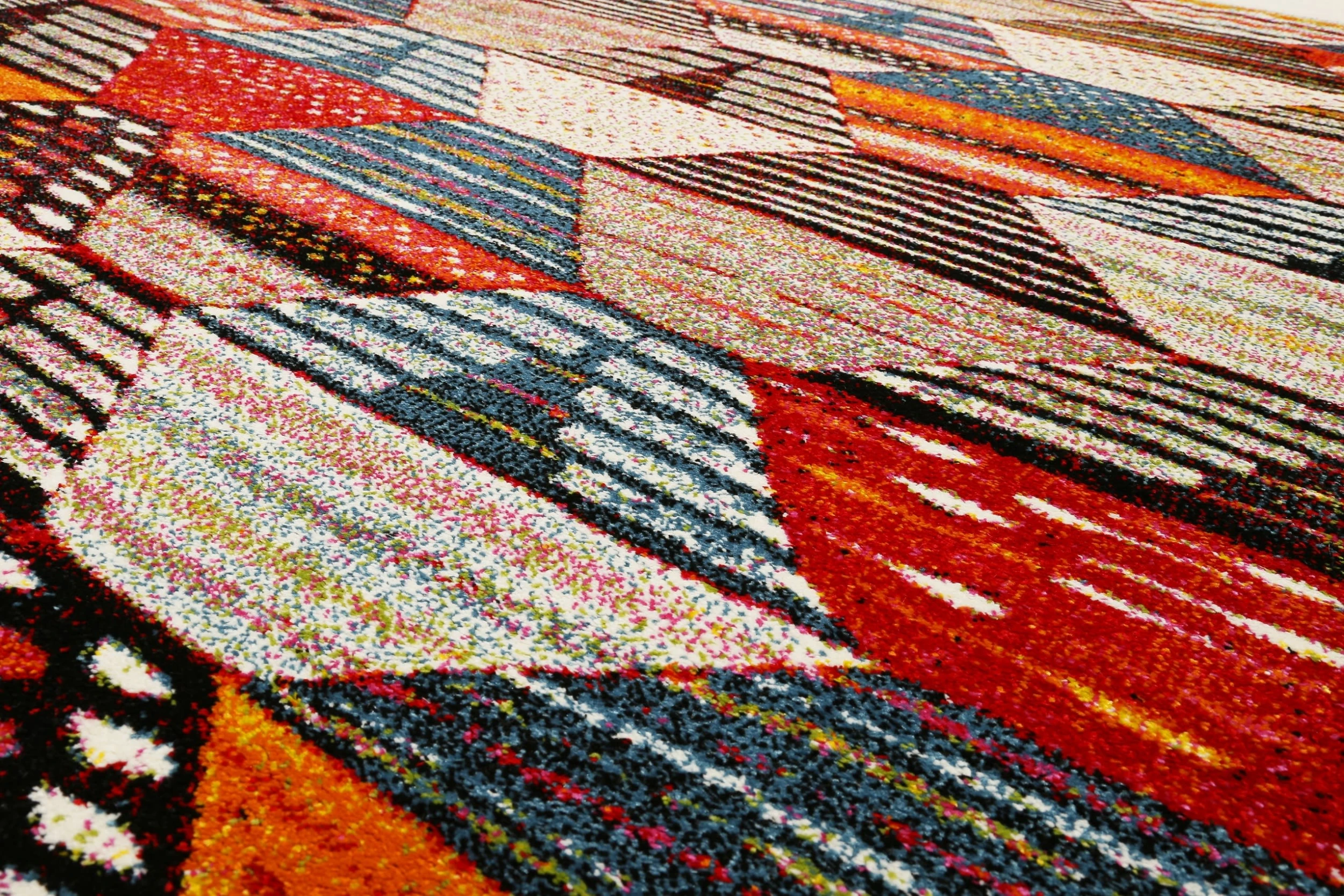 Tradition und Innovation. Orient trifft Okzident. In ihren abstrakten, farbenfrohen Mustern ähneln diese wunderschönen Webteppiche dem traditionellen Kunsthandwerk der Berber. Erst beim Blick auf Material und Verarbeitung zeigt sich: diese „Orient-Teppiche“ sind hochmoderne und recht unempfindliche Wohnaccessoires aus Kunstfaser. Sein vergleichsweise hohes Gewicht von 3000 g pro Quadratmeter bei einer Florhöhe von nur 13 mm zeigt die hohe Qualität des gewebten Bodenschmucks. Erhältlich in vielen verschiedenen Styles und Größen. Eine Anti-Rutsch-Unterlage wird empfohlen.