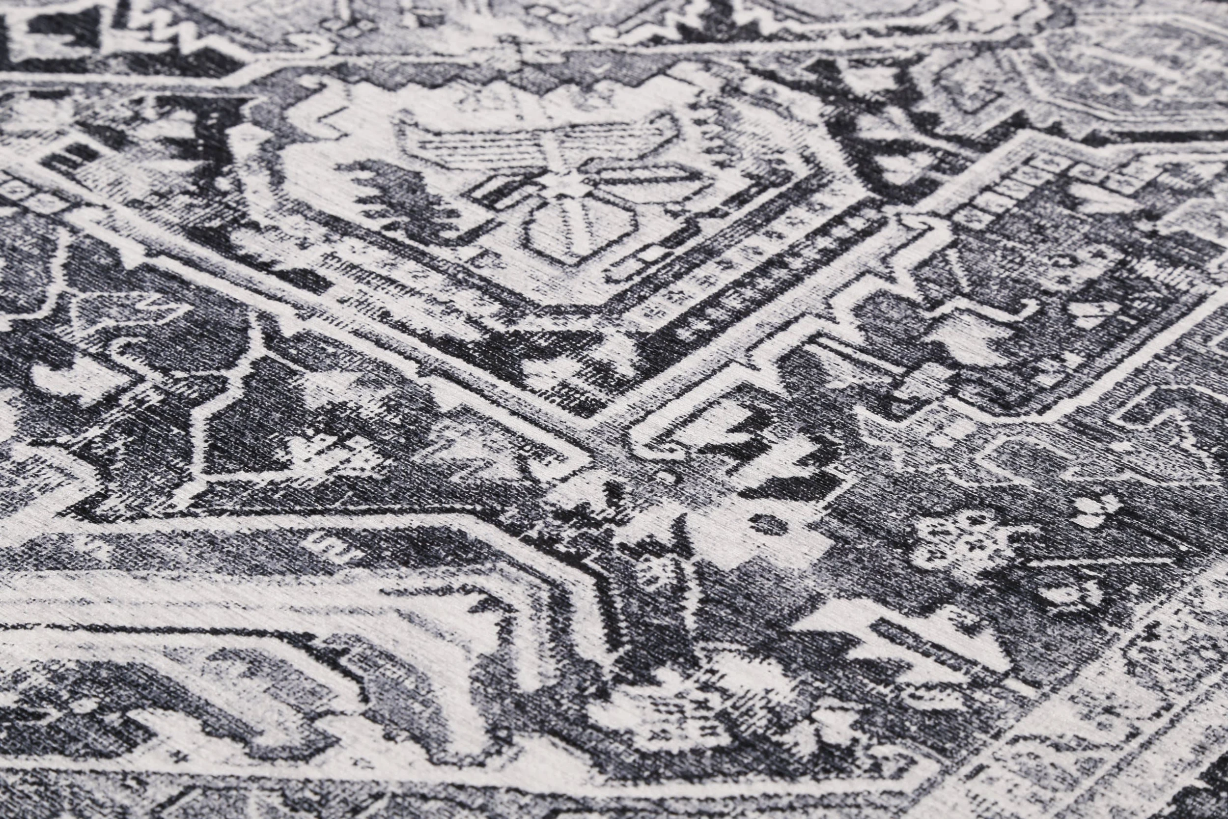 Dieser wunderschöne Webteppich aus Chenille – Baumwolle zaubert Flair in deine Wohnung. Retro-Muster und Vintage-Style, dazu coole grau Farbtöne – fertig ist der extravagante Hingucker. Schadstofffrei, strapazierfähig, pflegeleicht und Ökotex Standard 100 zertifiziert. Fusselfrei und ringsherum gekettelt. Wir empfehlen eine Antirutschunterlage.