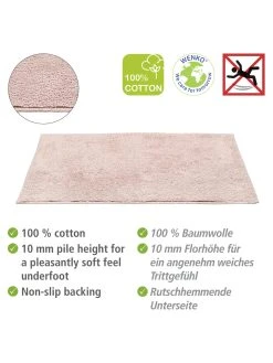 Die Badematte Ono von WENKO in Rosa kreiert stilvolle Behaglichkeit im Badezimmer. Der Bad-Teppich ist in weiteren Farbvarianten erhältlich.