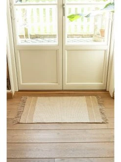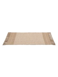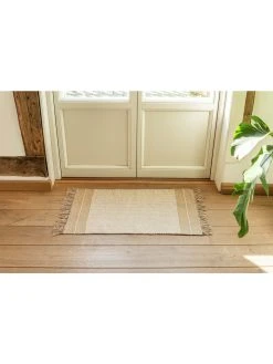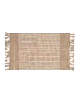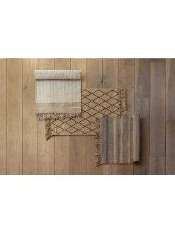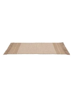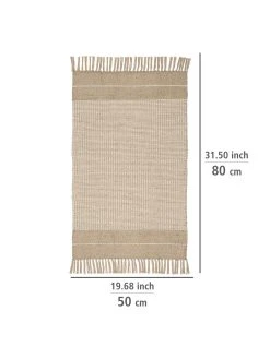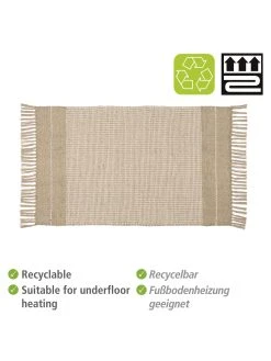 Die nachhaltigen Naturfasern der Jute bringen ihre natürliche, bräunliche Farbgebung mit. Elemente in heller Farbe geben der Badematte Struktur und machen sie zu einem modernen Badtextil. Abgerundet wird das Design von Fransen an den kurzen Seiten des (B x T): 50 x 80 cm großen Teppichs.