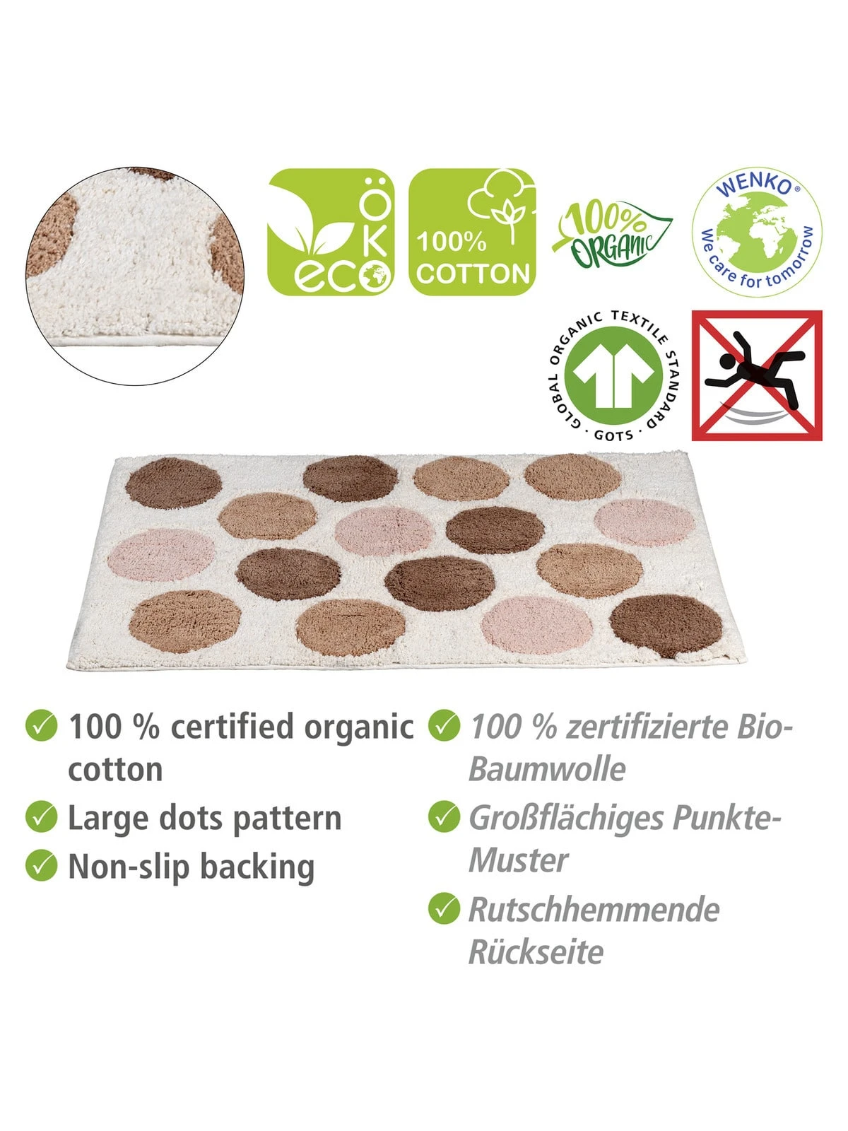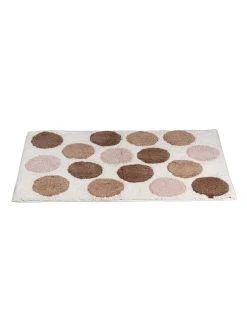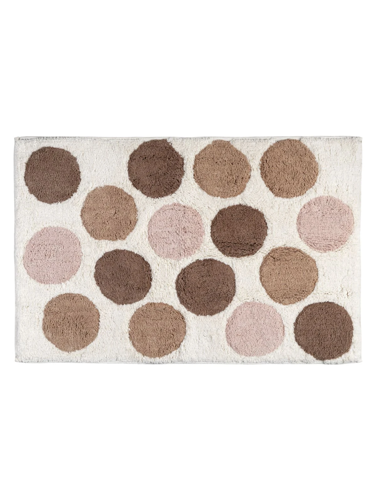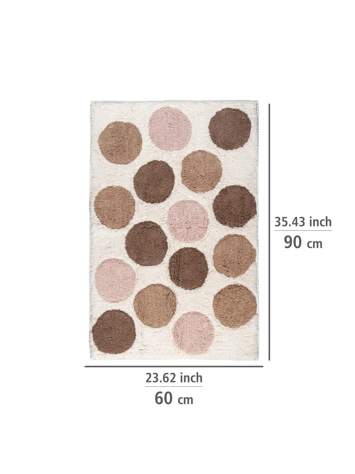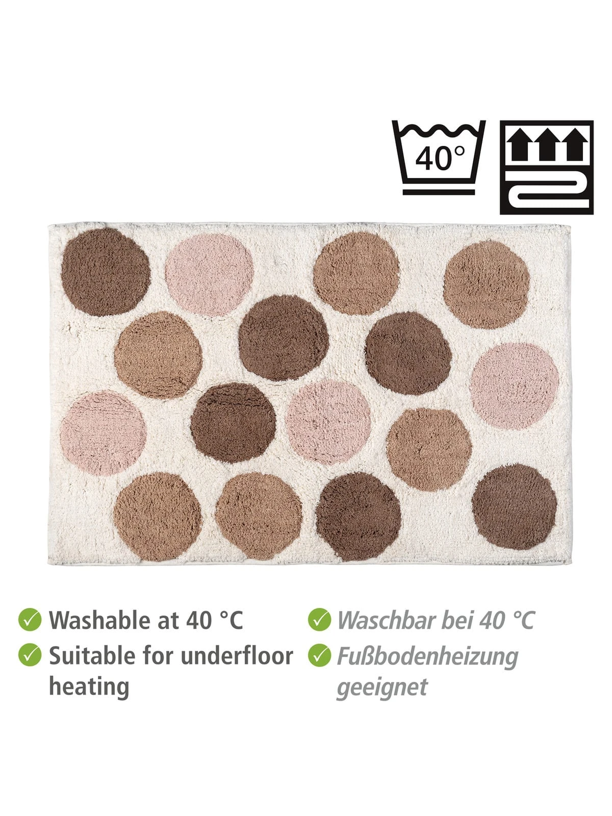 Auch vor dem Waschbecken oder als dekorativer Teppich im Badezimmer ist die Badematte Tibet ein wohltuendes Highlight. Der (B x T): 60 x 90 cm große Badvorleger besticht durch sein trendiges Design mit großen Punkten in verschiedenen Farben. Die Punkte in Hellbraun, Dunkelbraun und Rosa auf cremefarbenen Untergrund ergeben ein stimmiges Bild, das gute Laune versprüht.