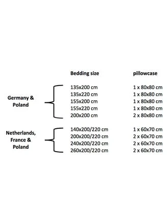 – bei Größe 200 x 200/220 cm, 240 x 220 cm und 260 x 220 cm: 1 Bettbezug und 2 Kissenbezüge